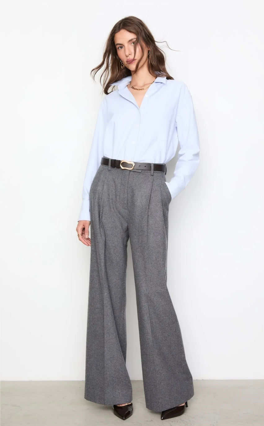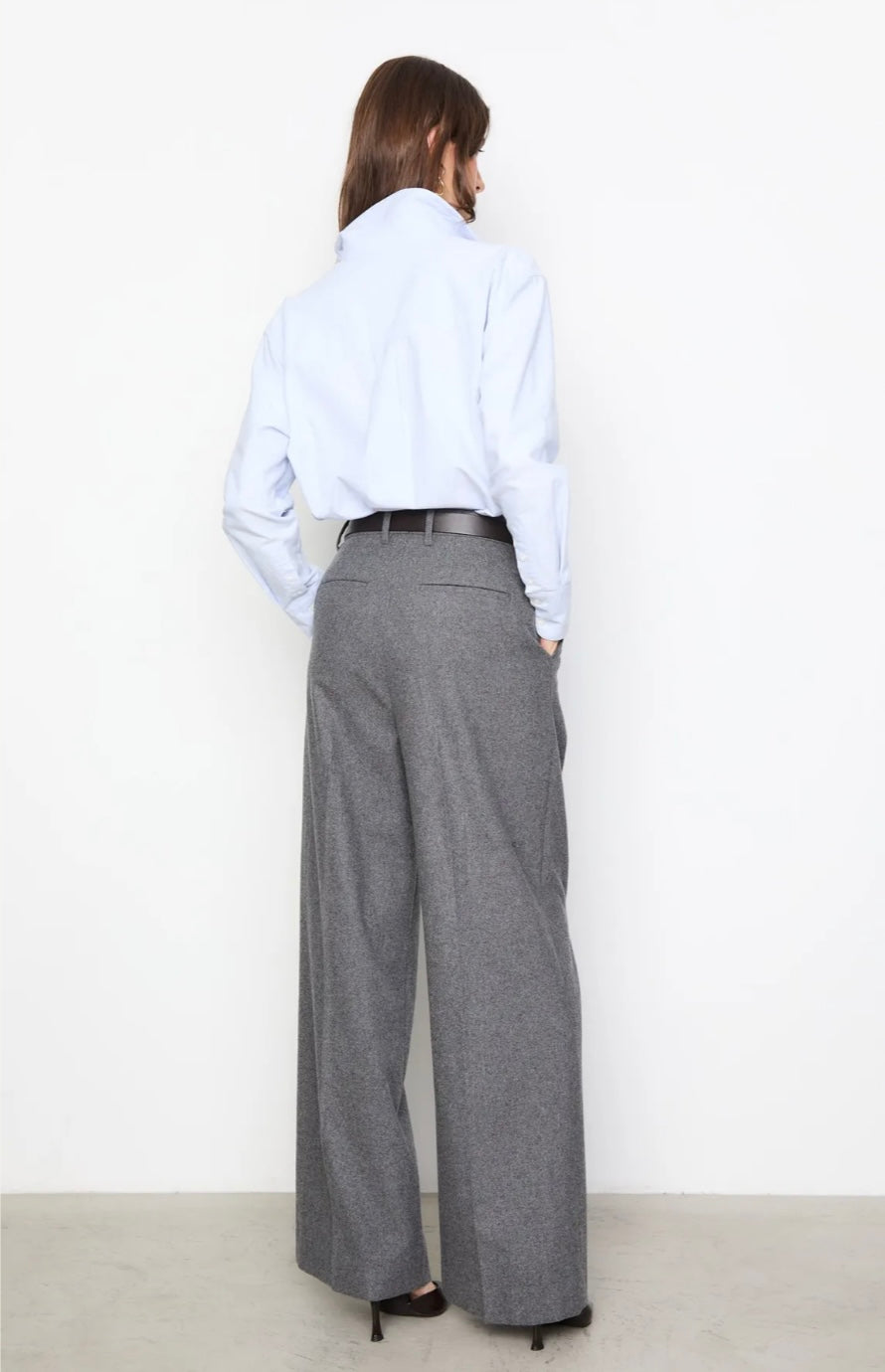 Ava Trouser is a tailored suit trouser with pleats at front. The trouser have a high waist and wide legs. 5 cm extra fabric at hem for easy adjustments of length. Matches perfect with our new style Ennia Flannel Blazer.
