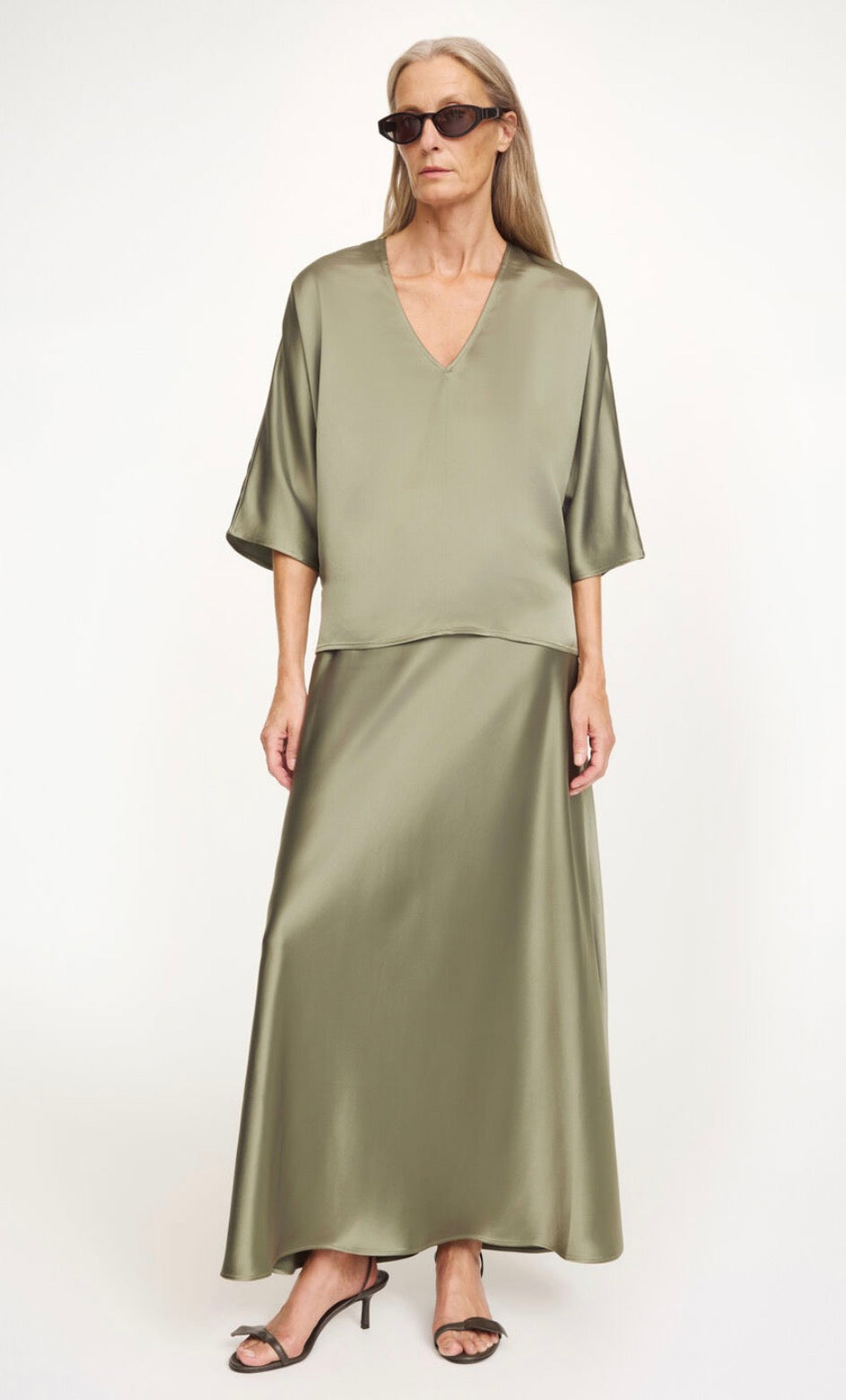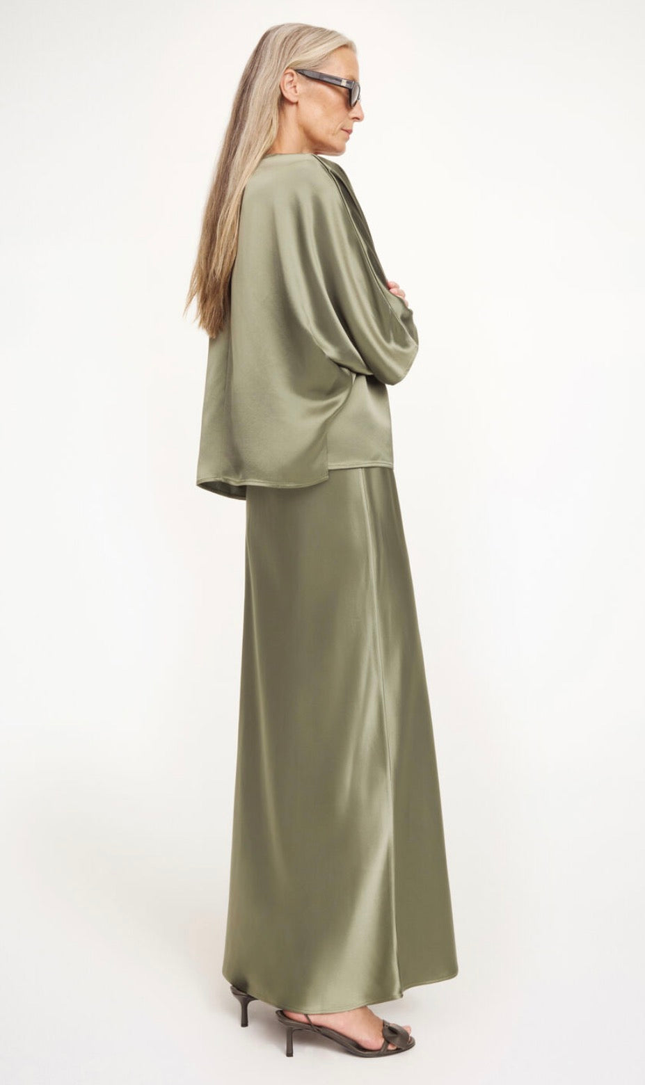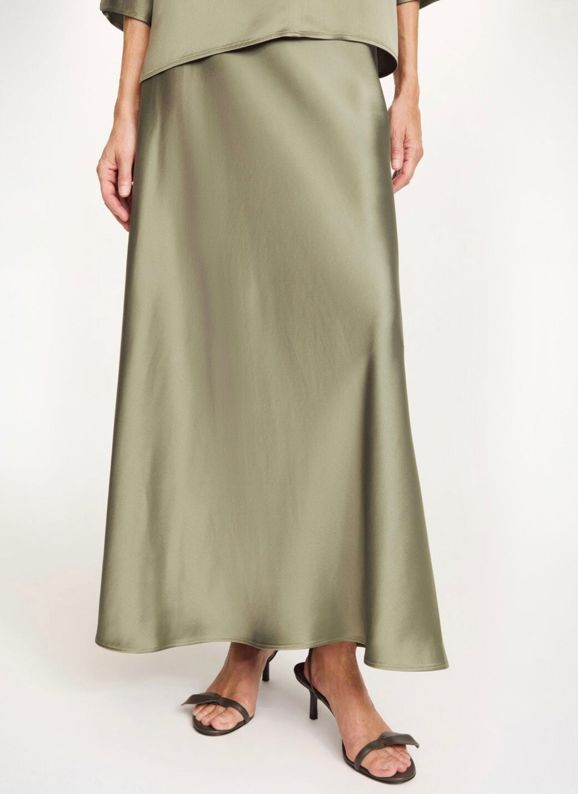 Falling languidly down the figure, the Barbara skirt is equally elegant and easy to wear. Designed in a lustrous satin, it sits high on the waist and falls to a maxi hemline. Wear it with the Hys top.