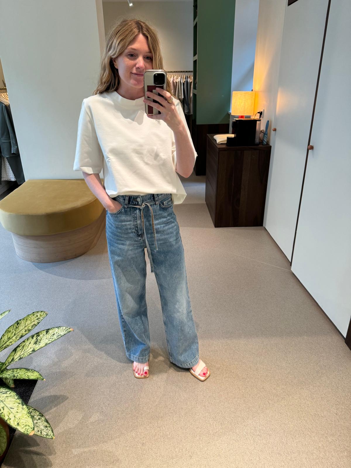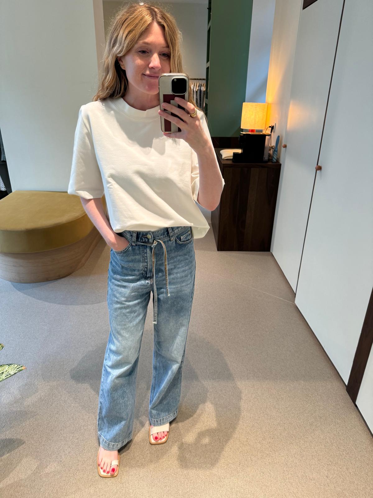 This is the perfect basic Tshirt for everyones wardrobe. It is designed by Belgian brand Les Bohemiennes and features a high round neckline, a heavy weight cotton quality that feels like a soft sweater and lengthy enough to wear over a trouser or tuck it in.