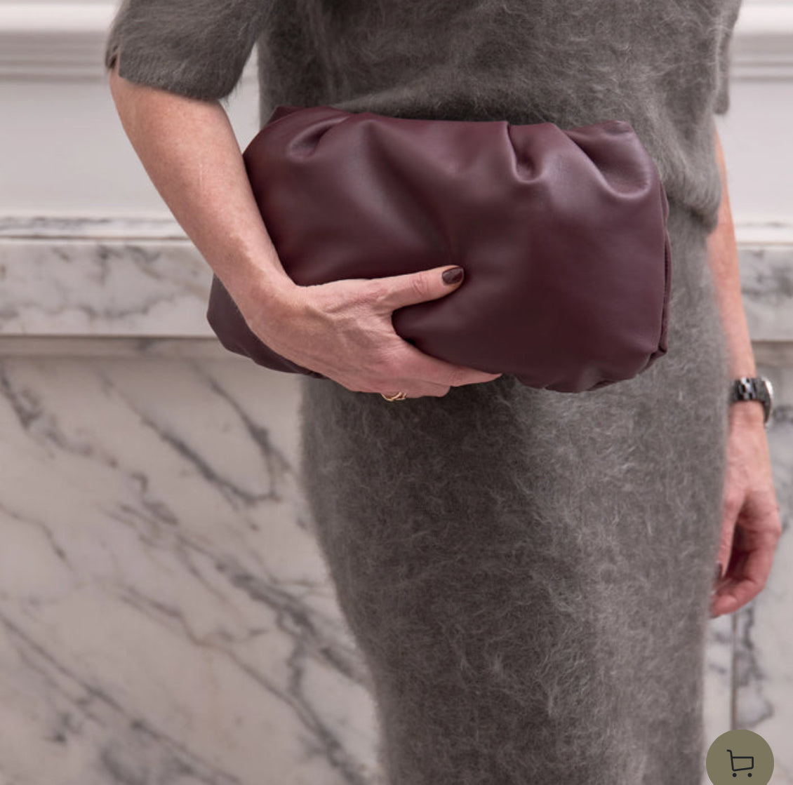 Its graceful curved silhouette adds instant elegance, whether you’re heading to a power lunch or a weekend soirée. Wear it over the shoulder with the gold-toned brass chain, or — our preferred way — carry it by hand for maximum impact.