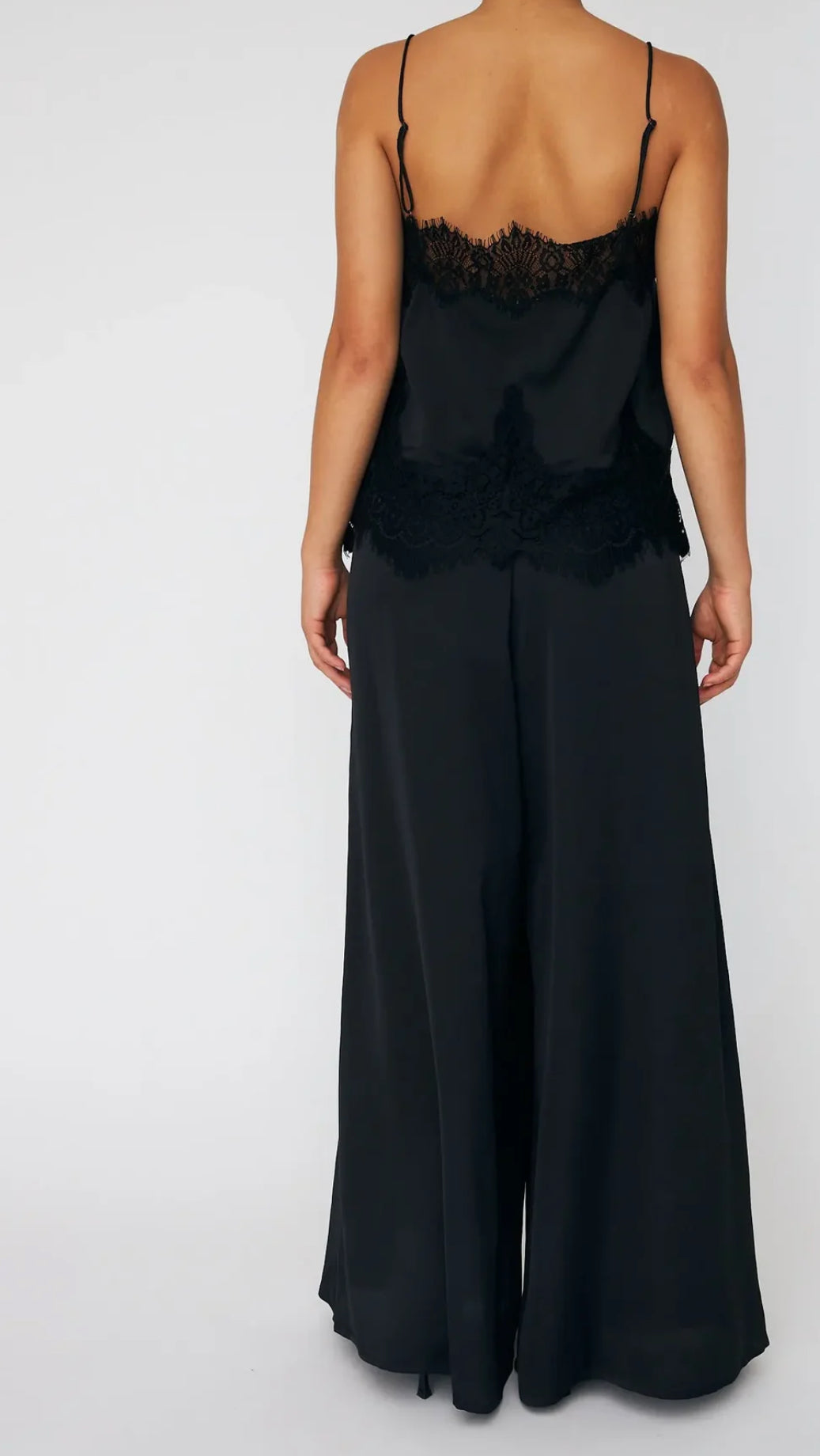 Top in a lightweight, smooth fabric with adjustable straps and a delicate lace trim at the neckline and hem.