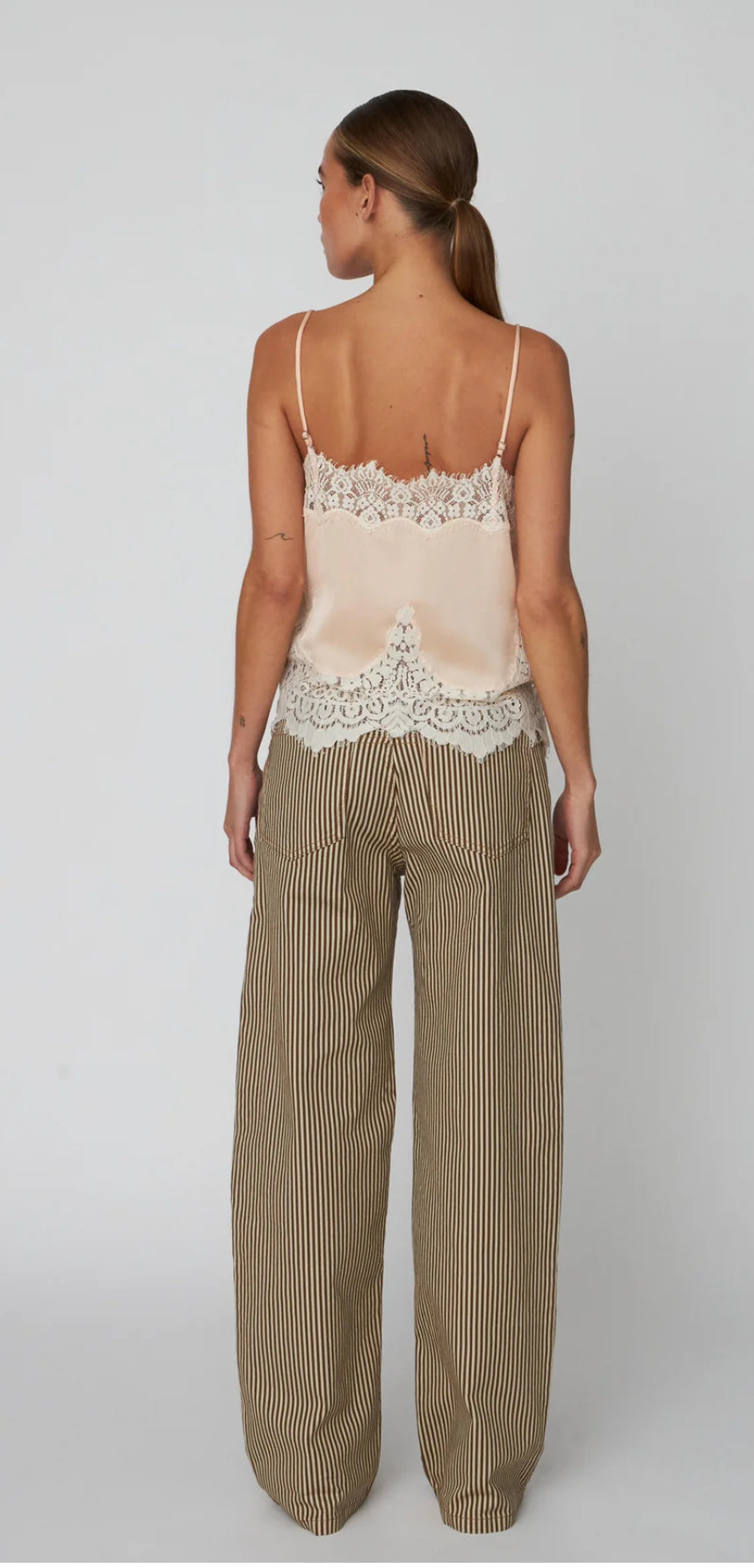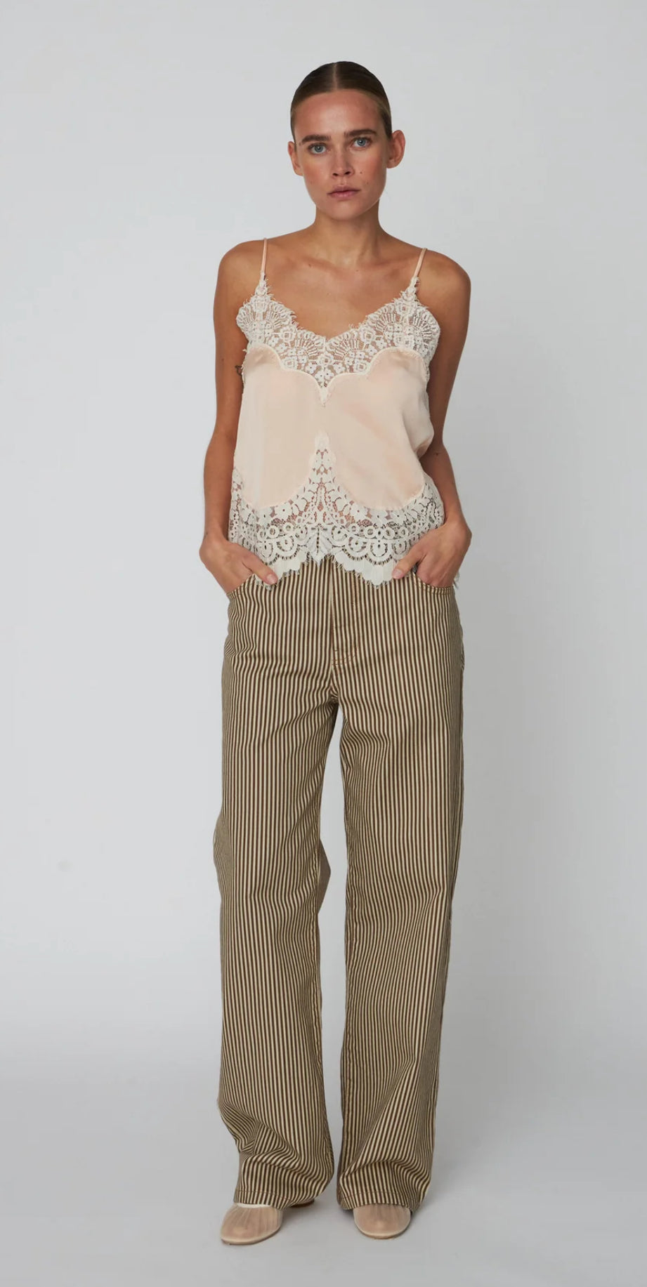 Top in a lightweight, smooth fabric with adjustable straps and a delicate lace trim at the neckline and hem.