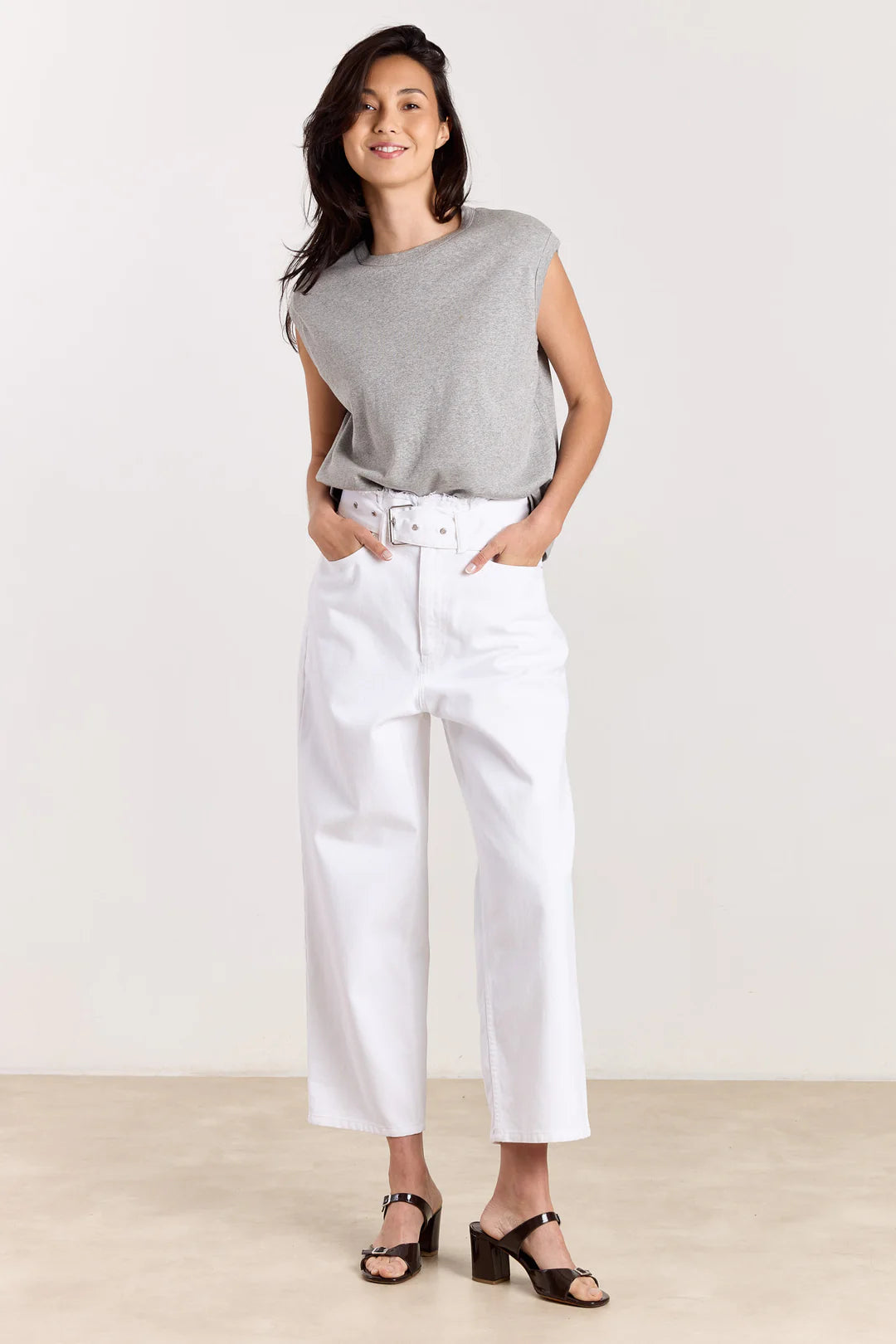 Clean and effortless, the Demi top is designed as a modern essential with a relaxed, easy silhouette. The sleeveless cut with softly shaped shoulders gives the piece a subtle structure, while the smooth jersey fabric keeps the look light and comfortable. Minimal in design, this top works as a refined base layer that balances simplicity with everyday versatility. Available in Navy, Grey Melange and Cream.