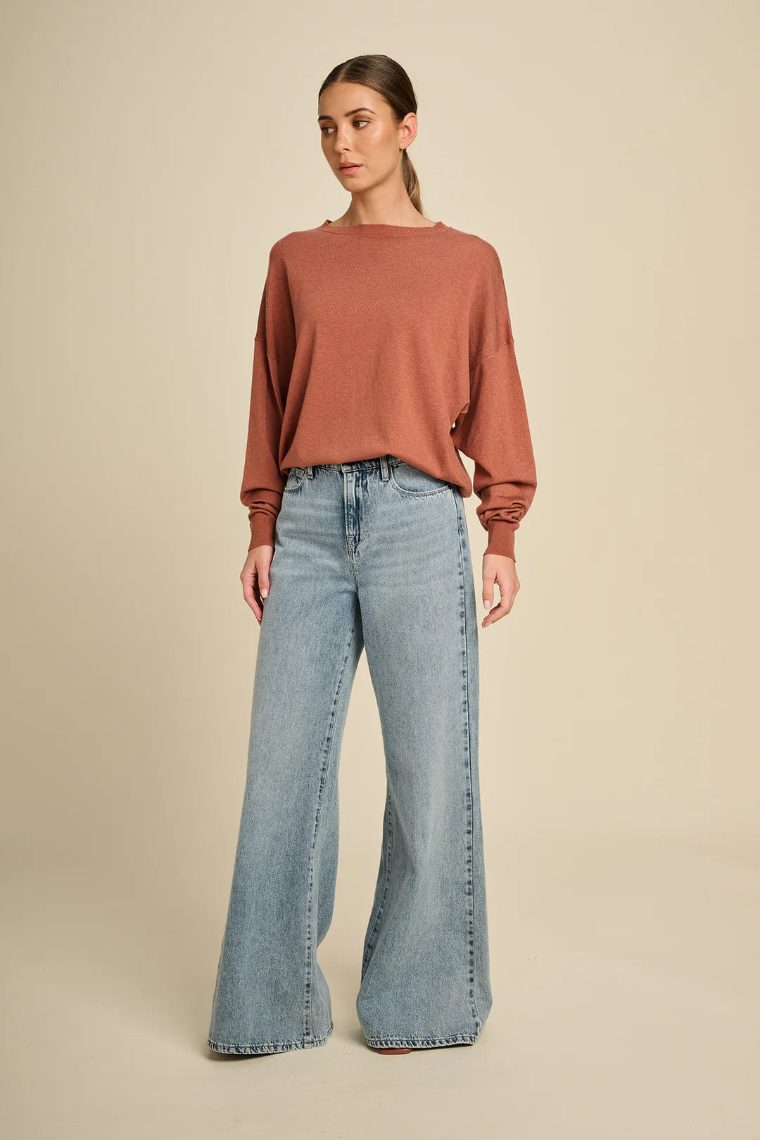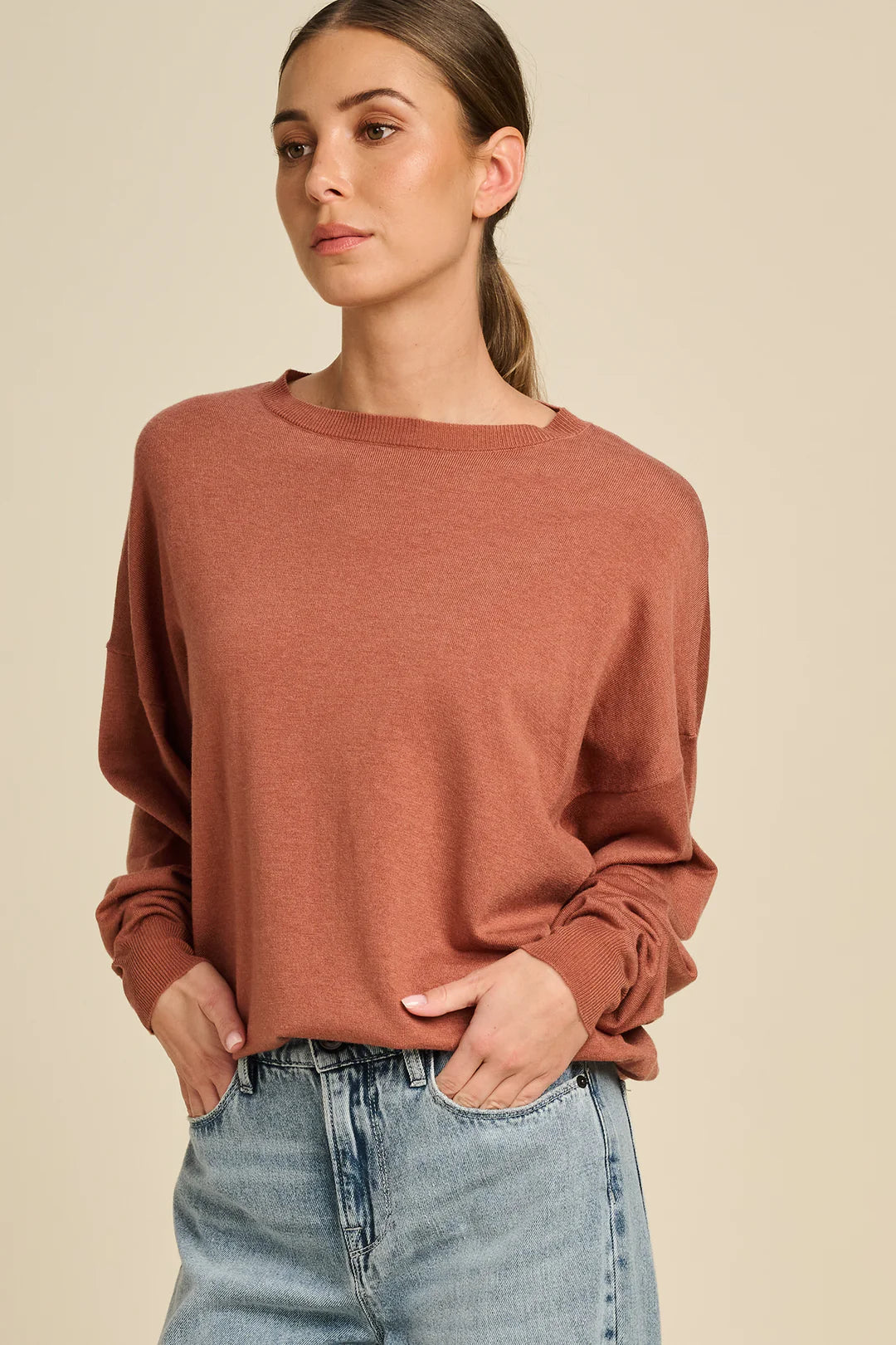 The Goia pullover is a soft wool blend knit with a modern, relaxed fit. Its minimalist design and rich colors make it a versatile essential for every day.
