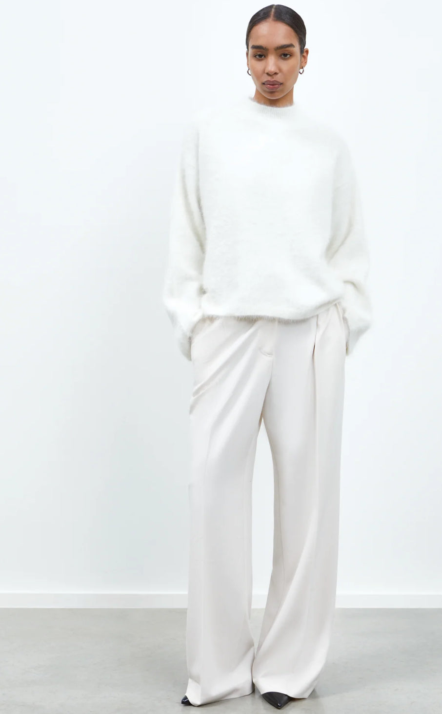 The Hervé Knit is a soft, cocooning piece with a high neckline and relaxed fit. Its voluminous silhouette and subtly textured surface bring quiet impact to everyday looks — style it with soft tailored trousers or layer over a silk shirt for added dimension.