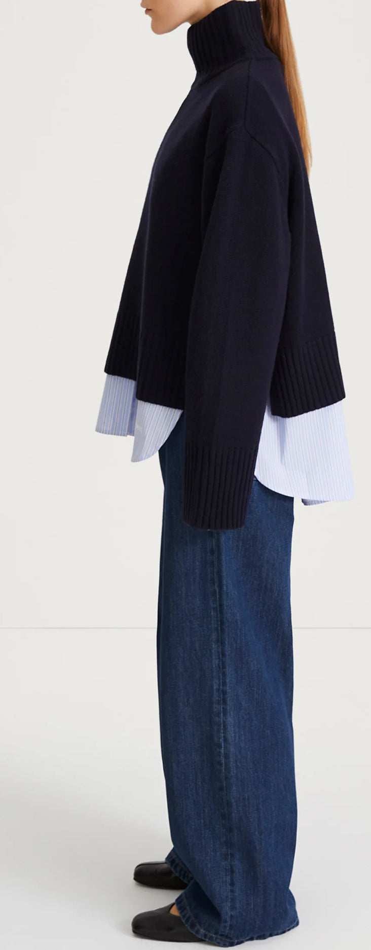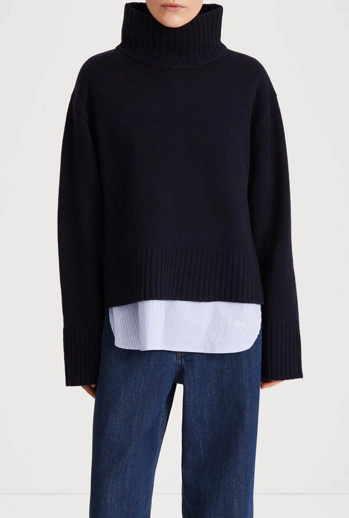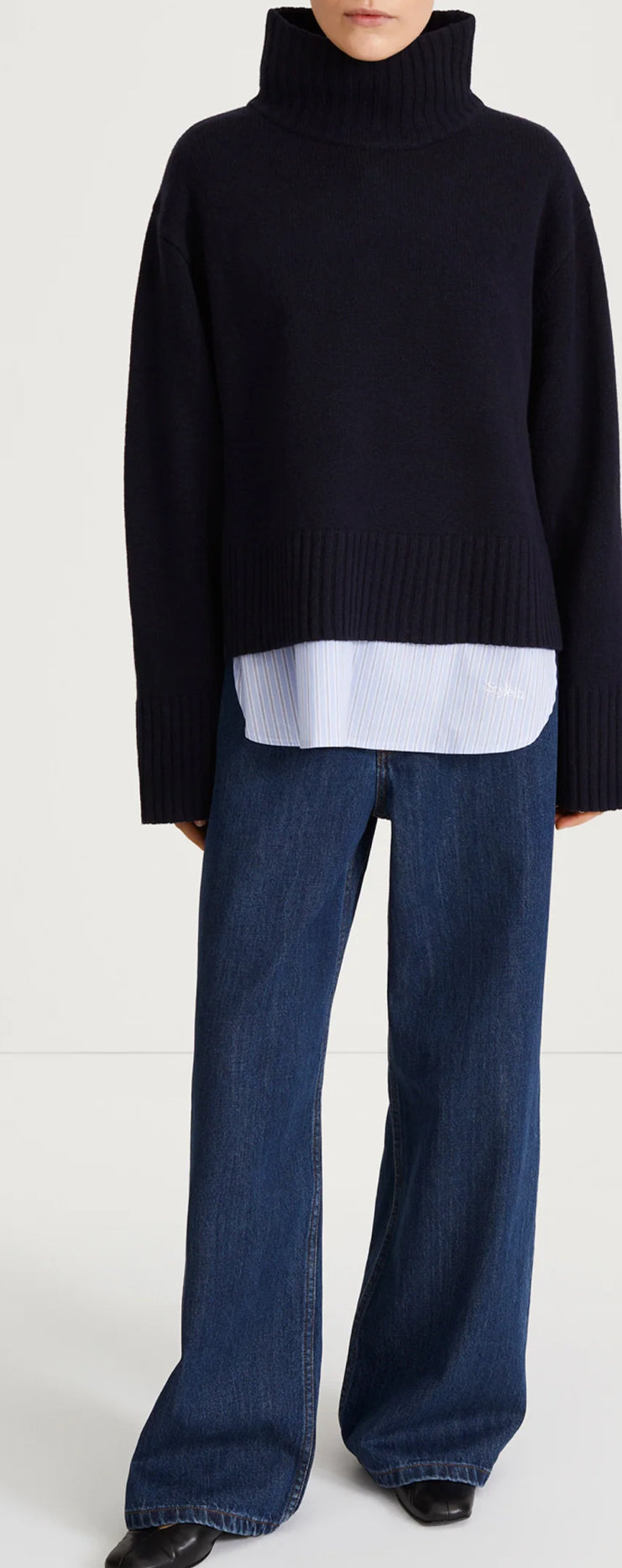 Crafted from soft merino wool, the Hilary Sweater features a luxurious polo neck with ribbed detailing at the collar, sleeve openings, and hem. Designed with full-length sleeves and a timeless silhouette for effortless layering