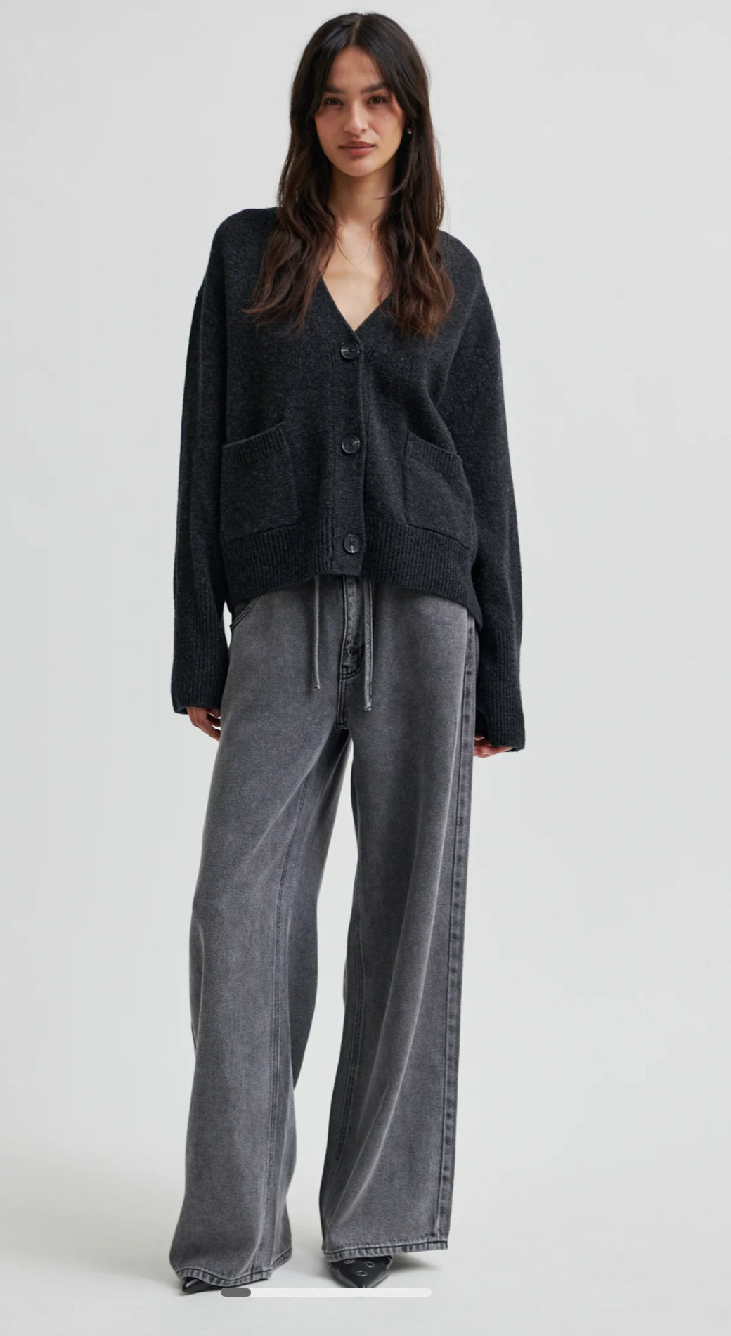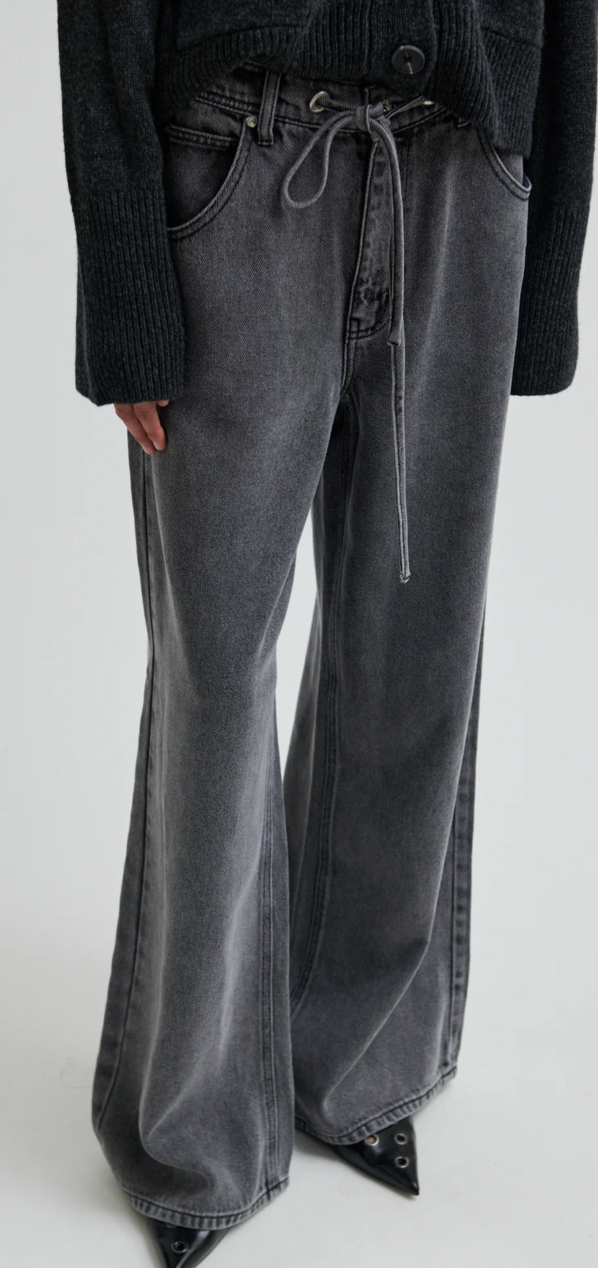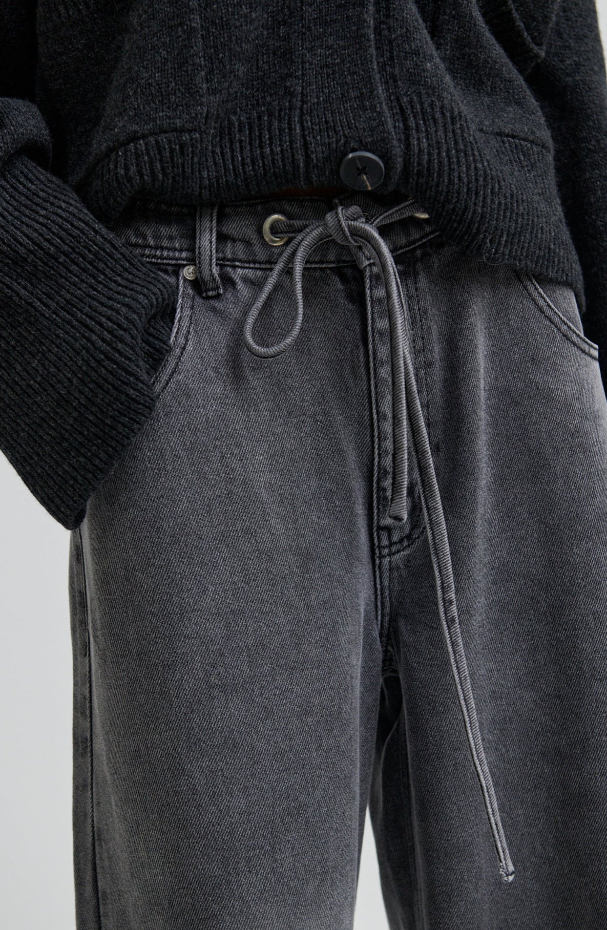 Second Female jeans with belt. The jeans are made in soft, drapy lyocell. Featuring a concealed zip fastening and button at the front and drawstring with tie fastening at the waist. Five-pocket style. Mid waist with loose, straight leg.