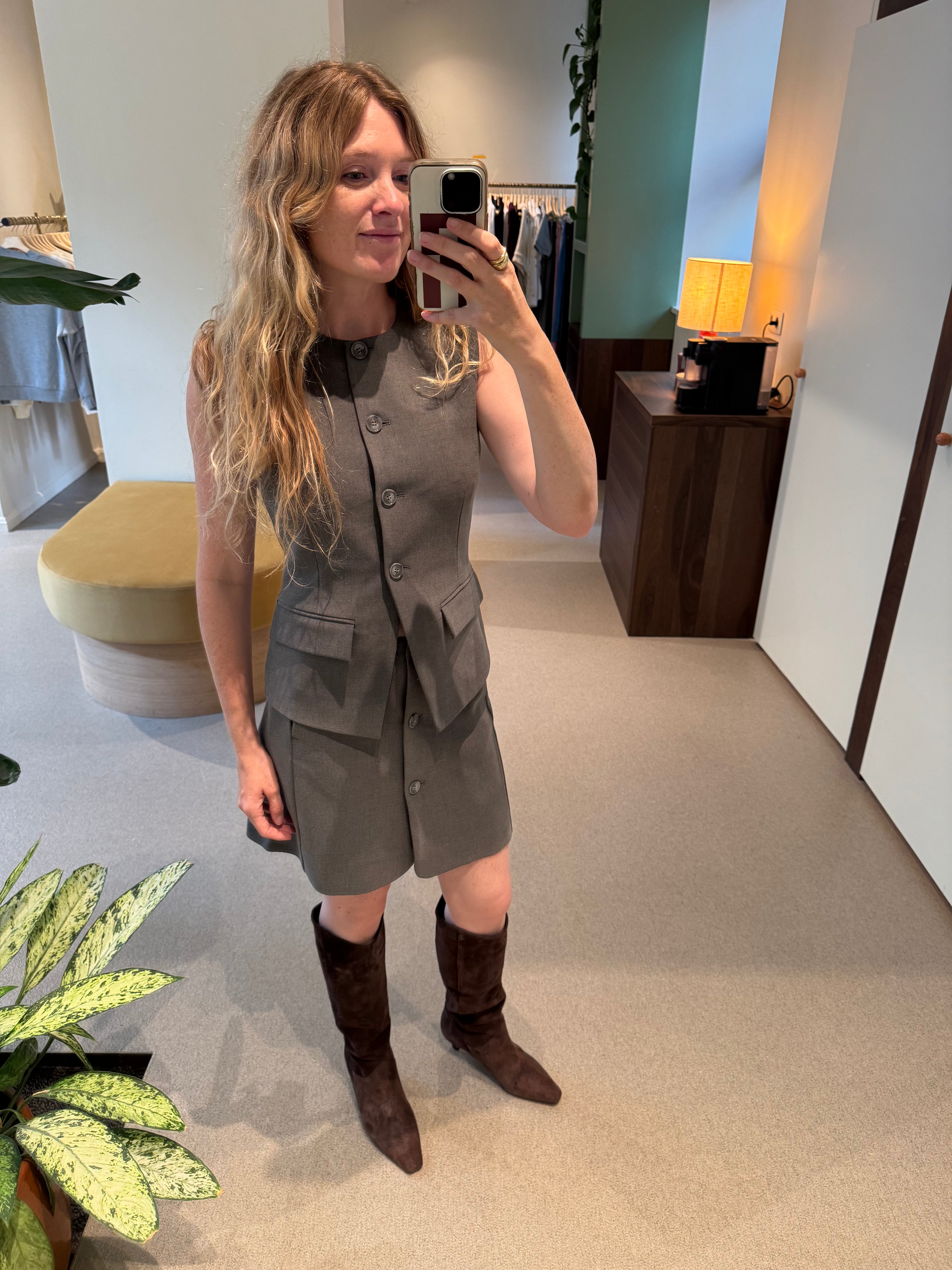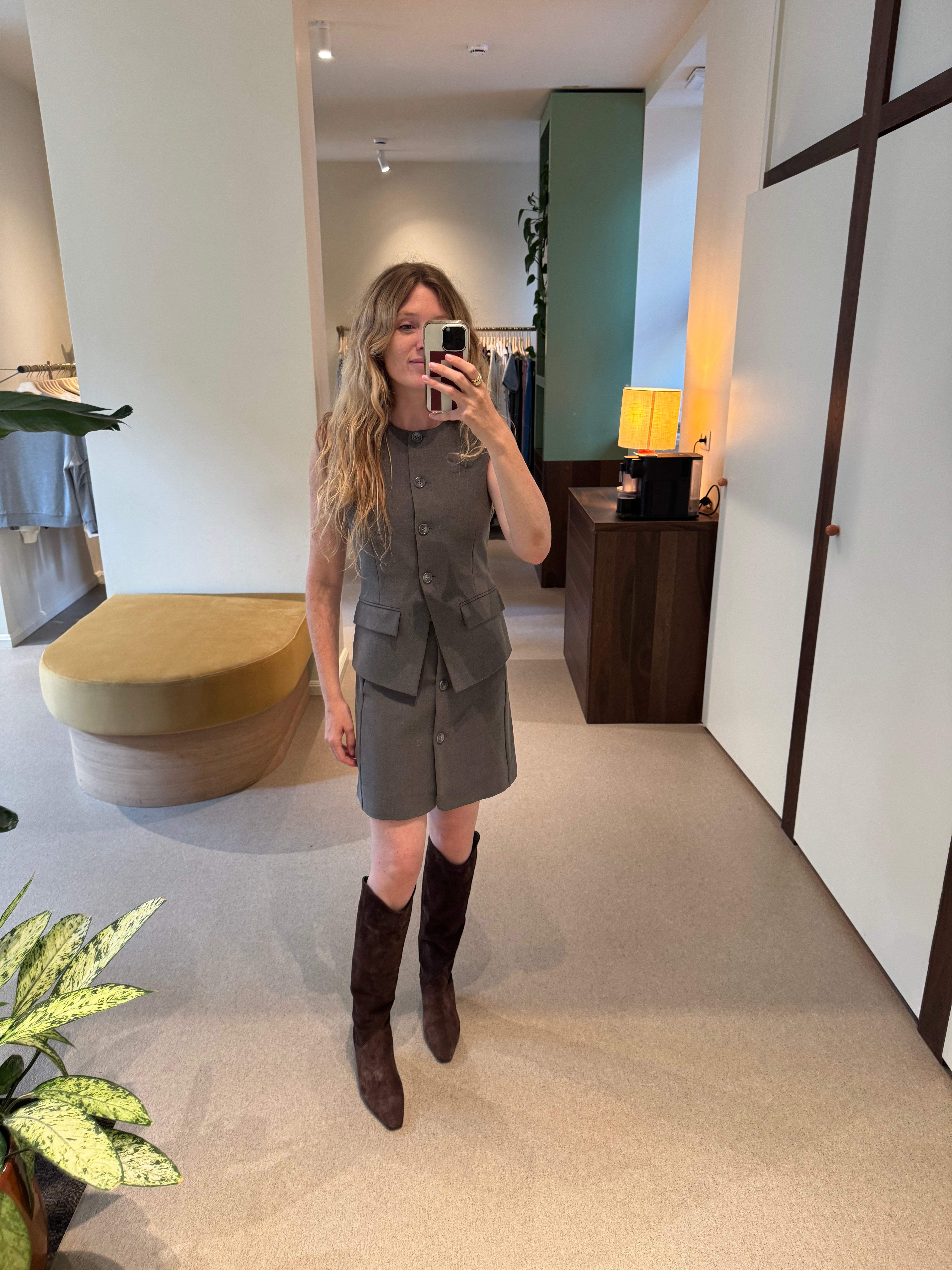 The Kendra Vest from Lovechild 1979 is designed in an elegant dark grey shade that will perfectly complement any wardrobe. Combining style with comfort, this vest is ideal for both everyday wear and special occasions.