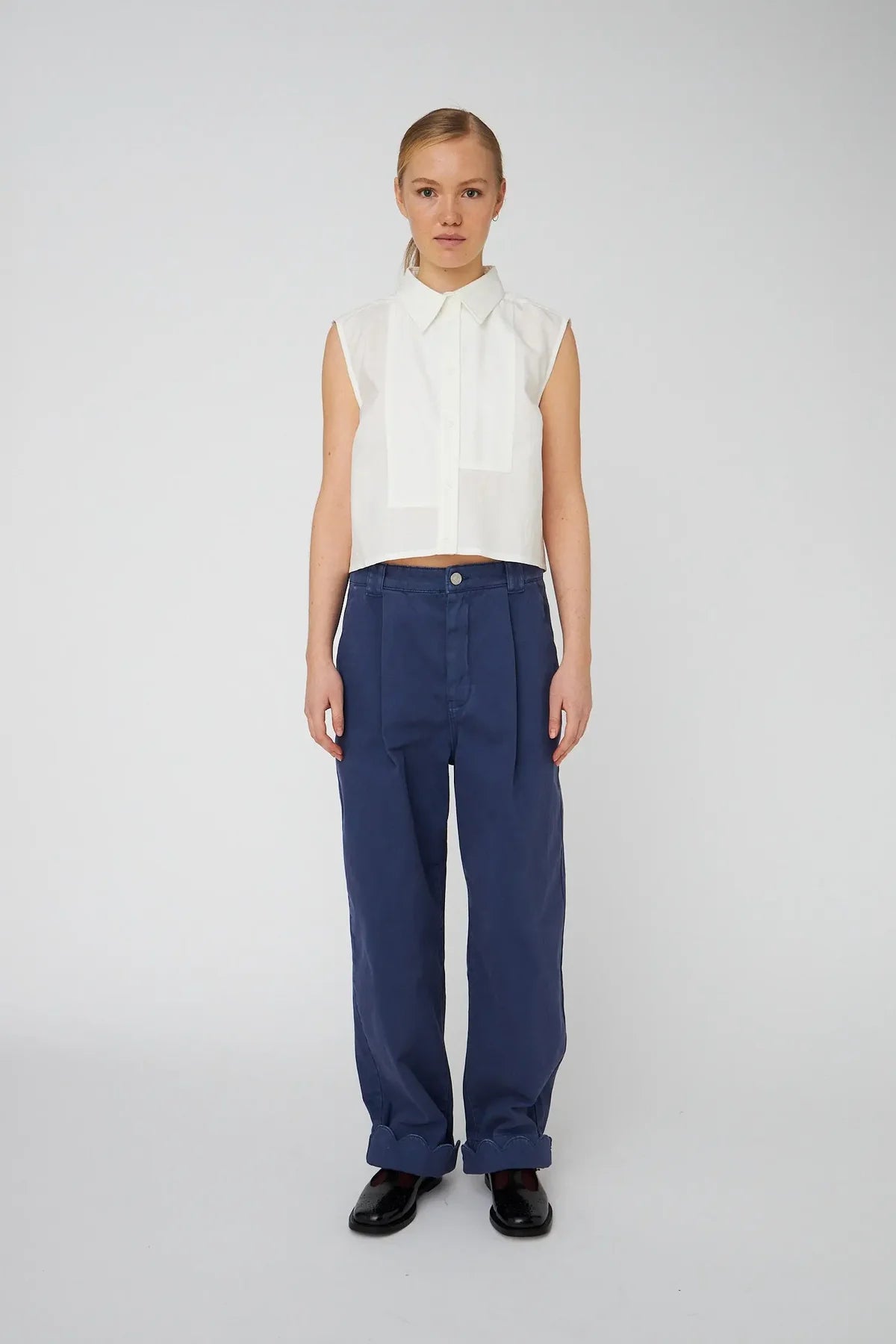LOW WAISTE COTTON PANTS BLUE
