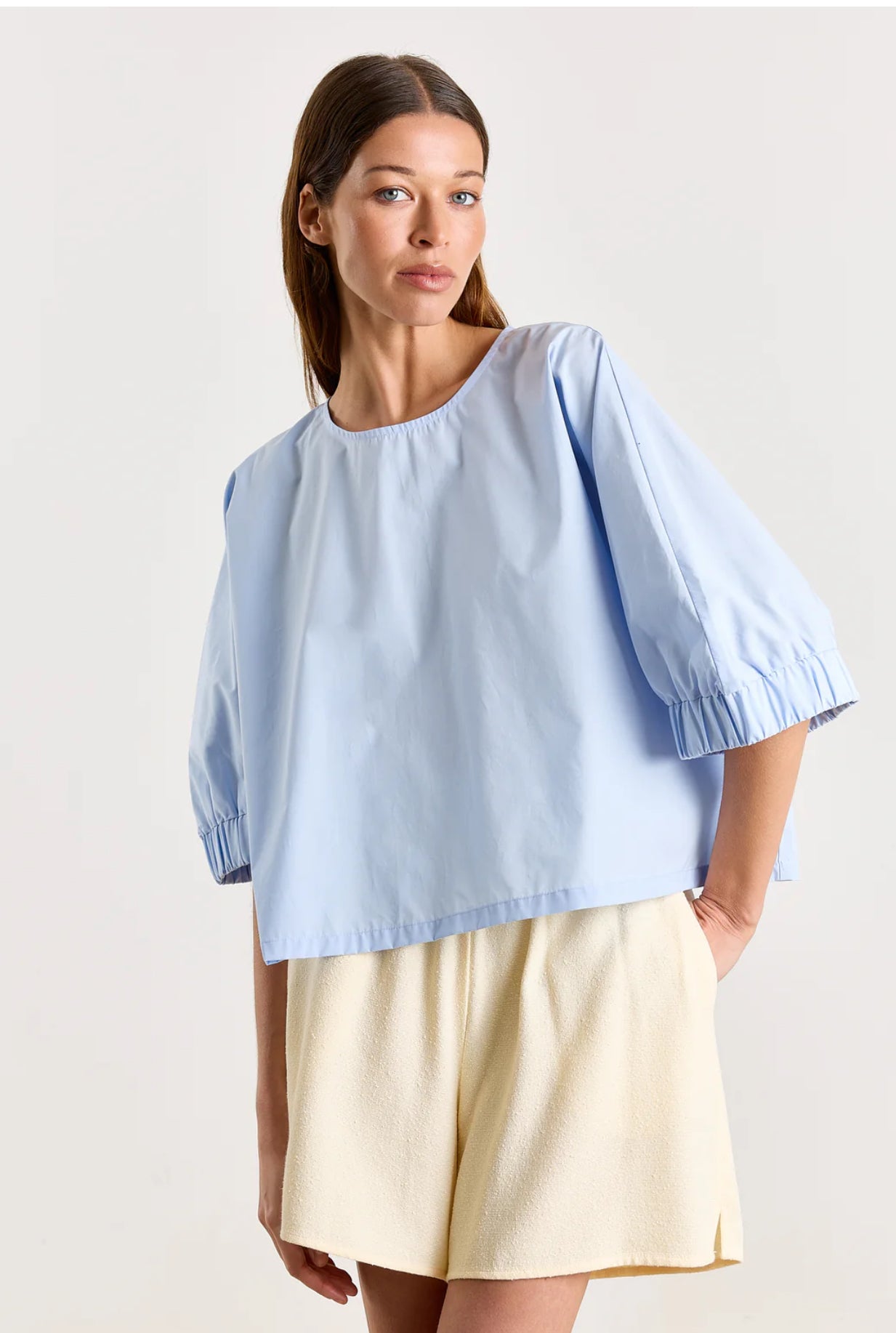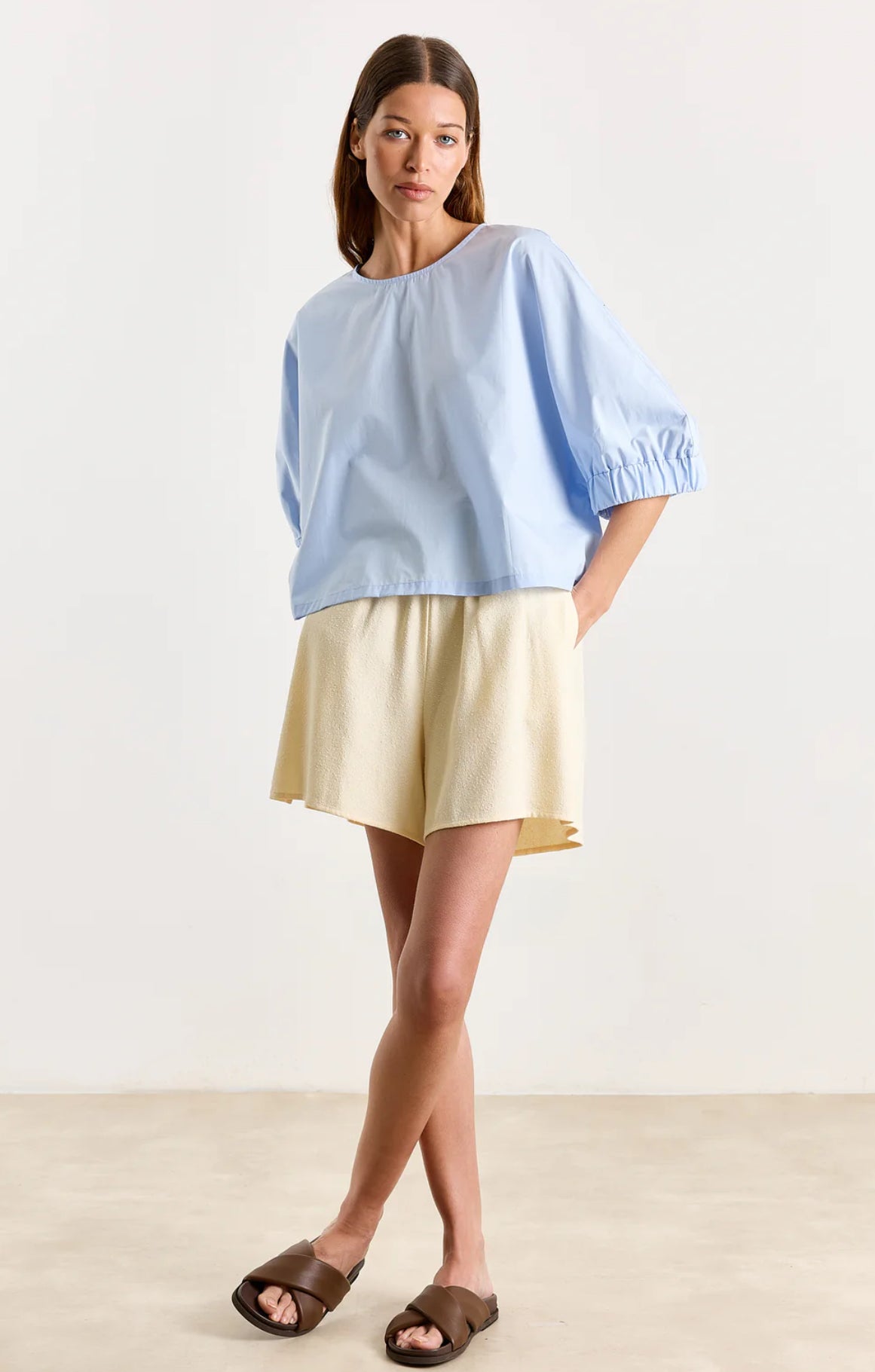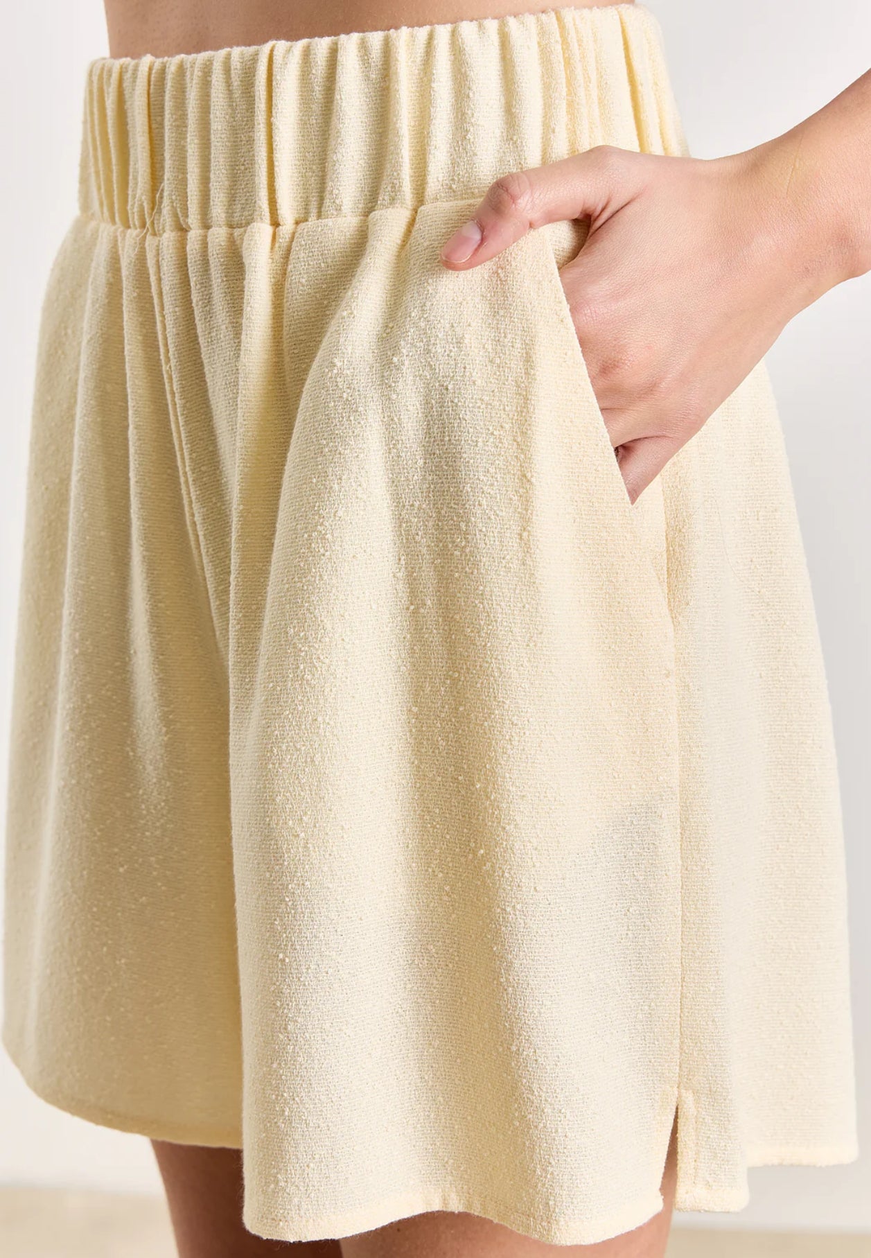 Designed in a softly textured fabric, these high-waisted shorts are your effortless go-to for warm weather, whether you’re dressing them up or keeping things simple.