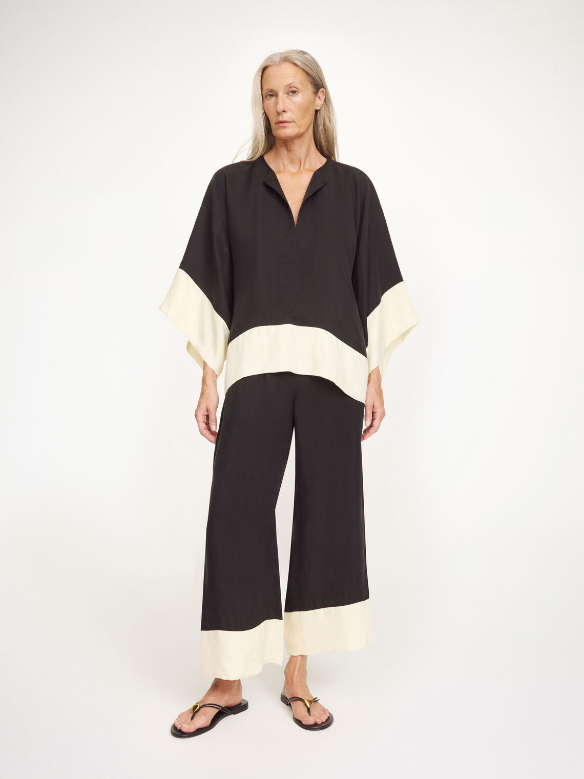 Both elegant and airy, the Mirabello trousers exude bohemian glamour. Made in a cupro mix, they’re detailed with a high elastic waistband, side pockets and wide legs. Wear with the coordinating Cicie blouse.