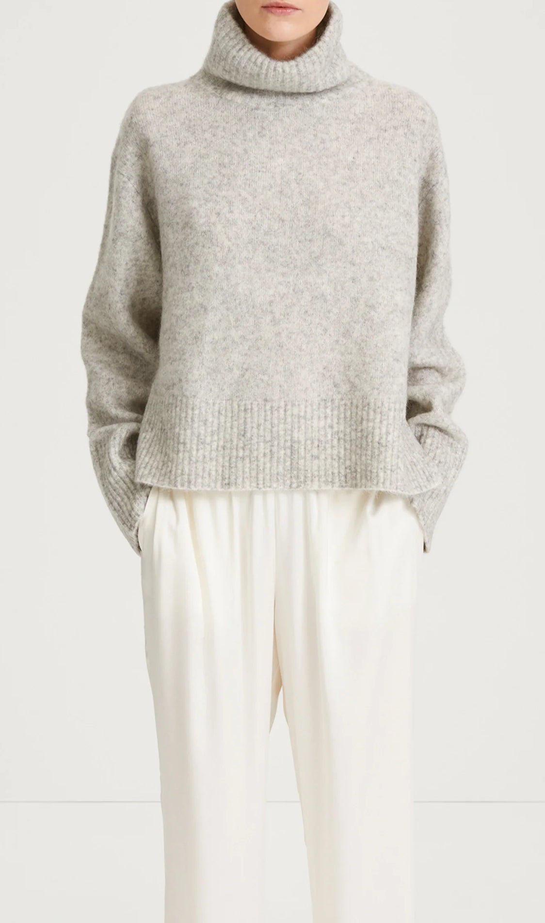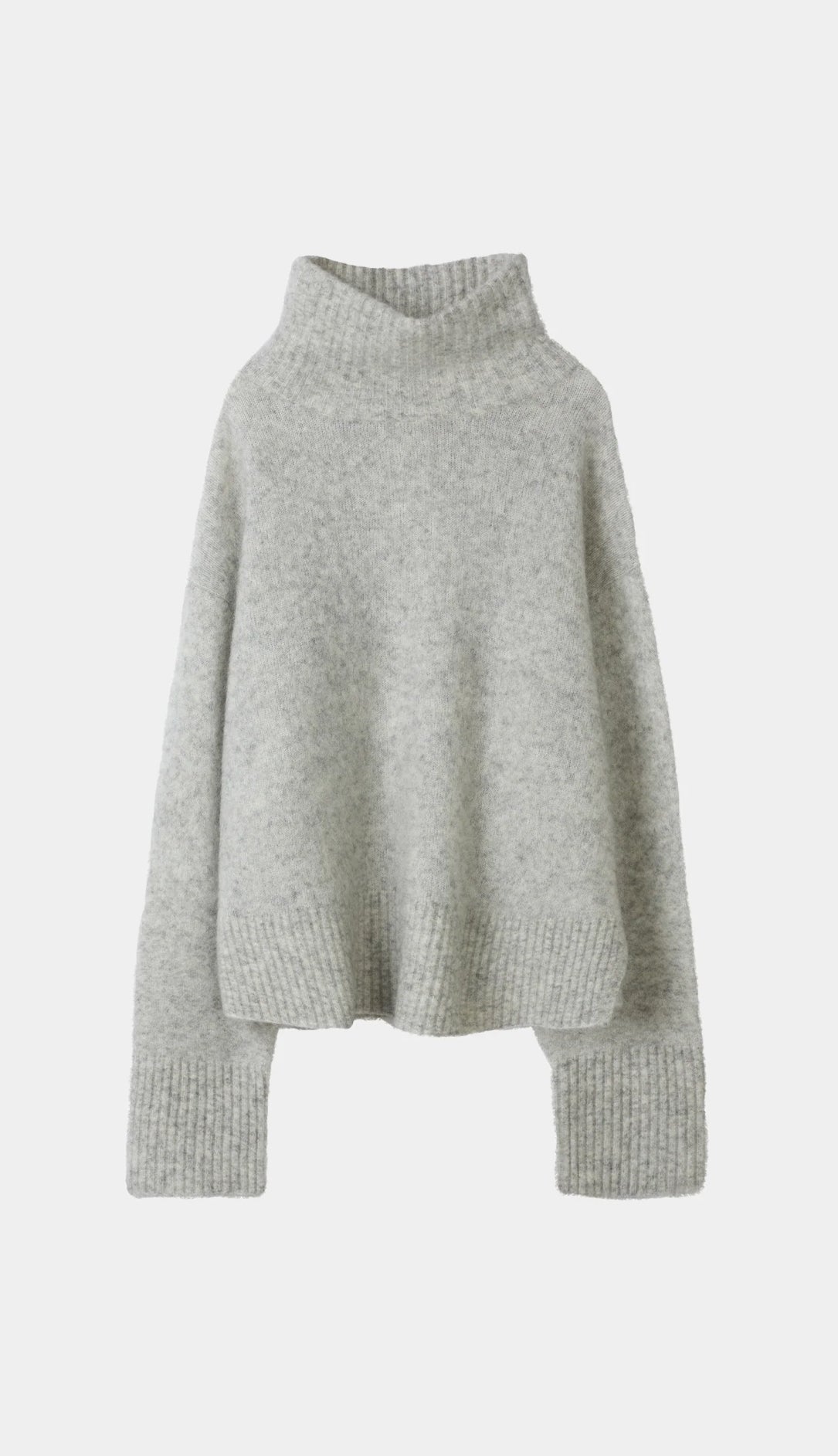 Nike is a voluminous knitted turtleneck sweater, crafted from a luxurious Mohair-blend knit. The sweater features side slits and a mid-length design, with full-length sleeves finished with ribbed cuffs