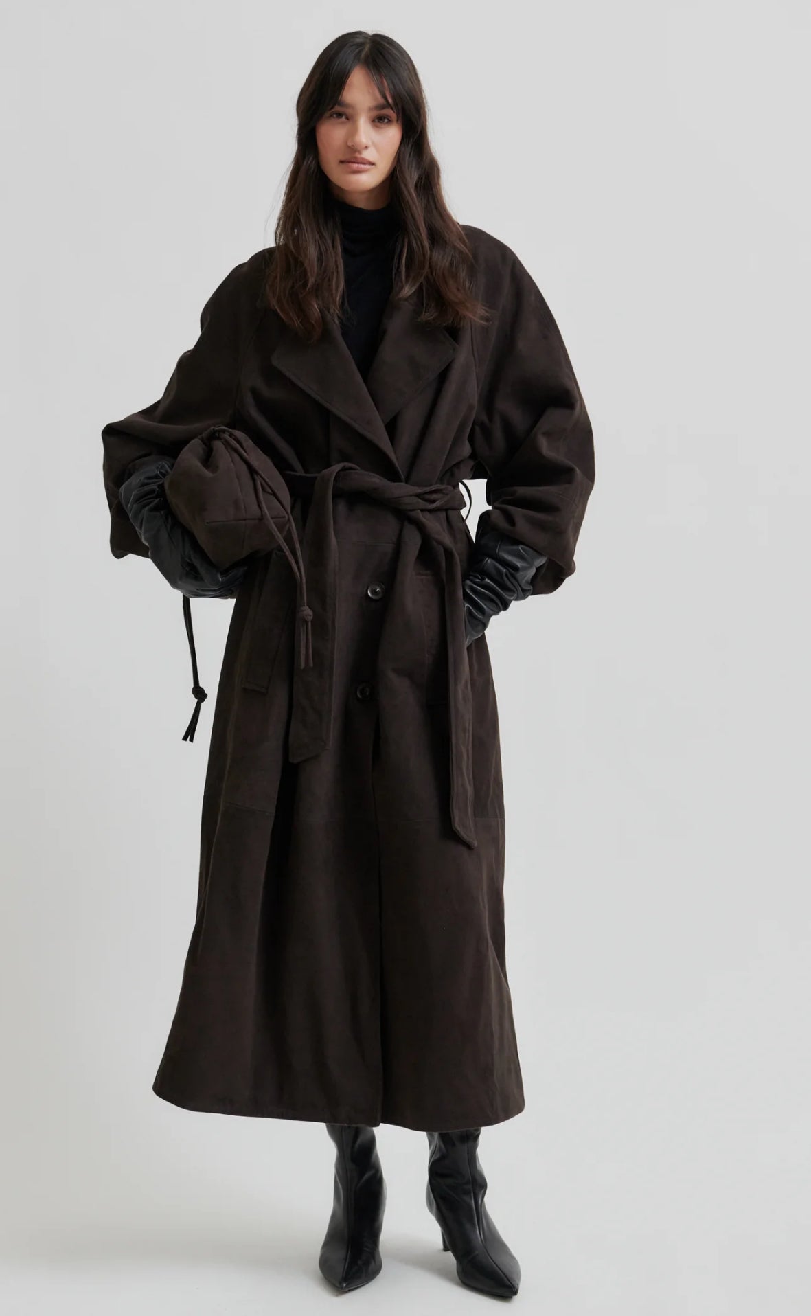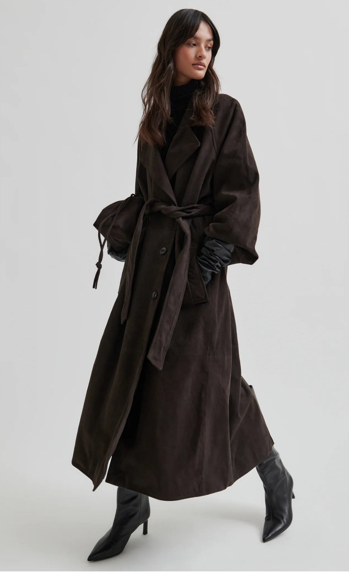 NOOMIE SUEDE TRENCHCOAT CHOCOLATE