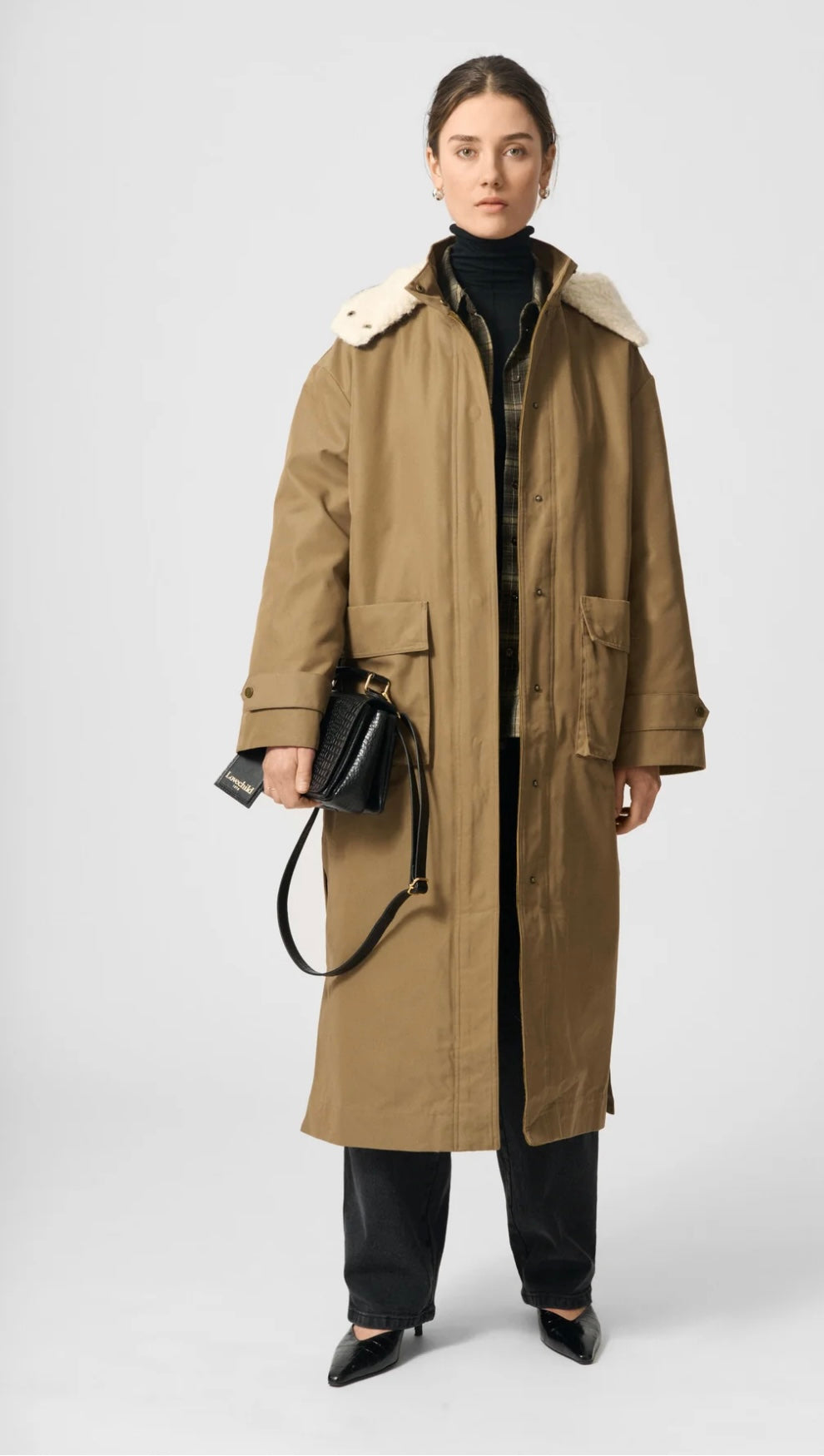 The Oleandra Coat from Lovechild 1979 in Tapenade is the perfect choice for your fall and winter wardrobe. This jacket combines style and functionality with a modern silhouette that suits a variety of occasions.
