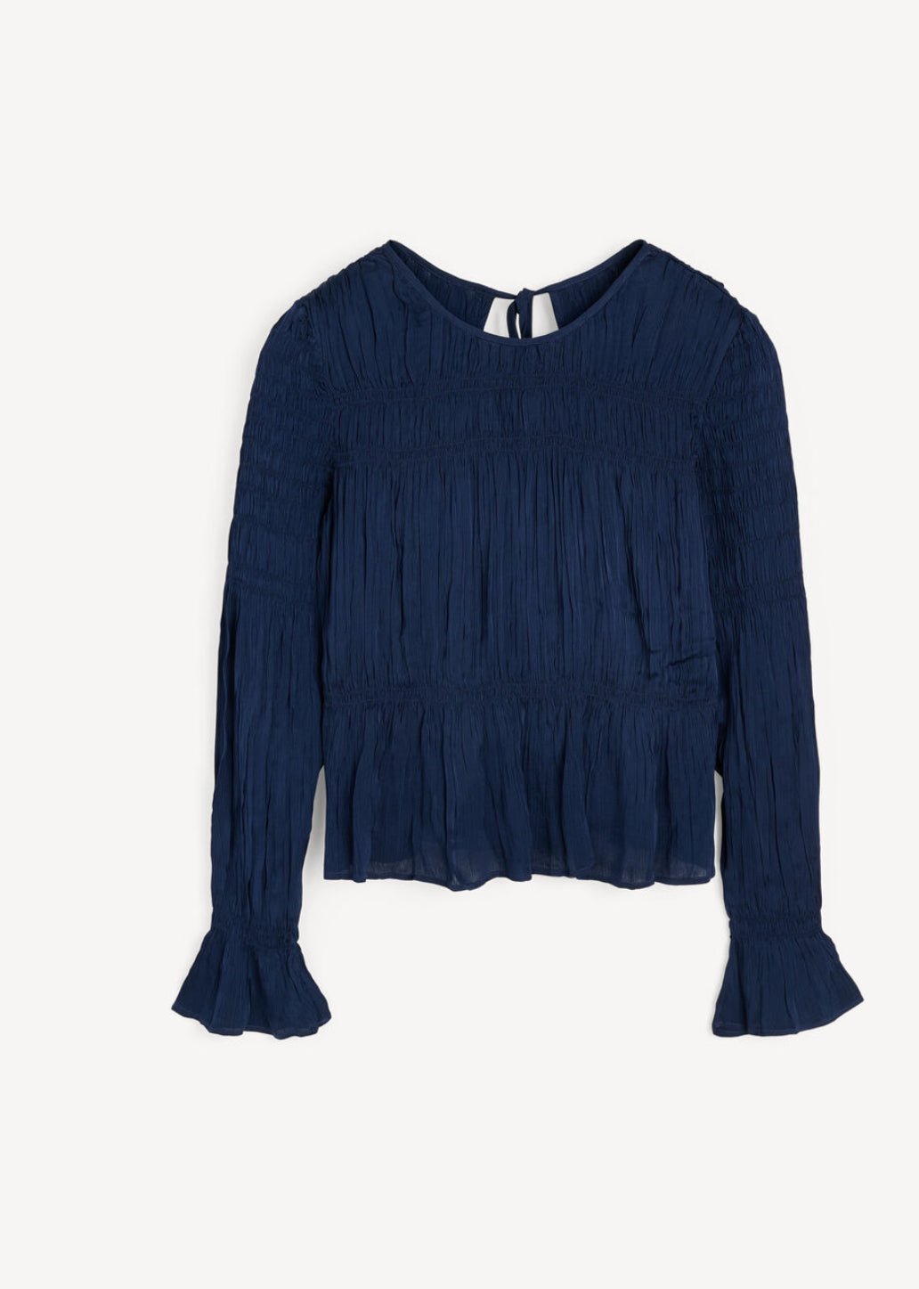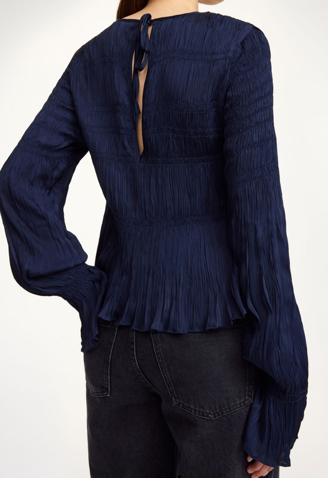 Making an eclectic assertion, the Ovas blouse is designed with smock details galore. The feminine fitted design – which features a low back with a tie closure – is ideal for special occasions. We suggest styling it with the matching Ilona skirt.