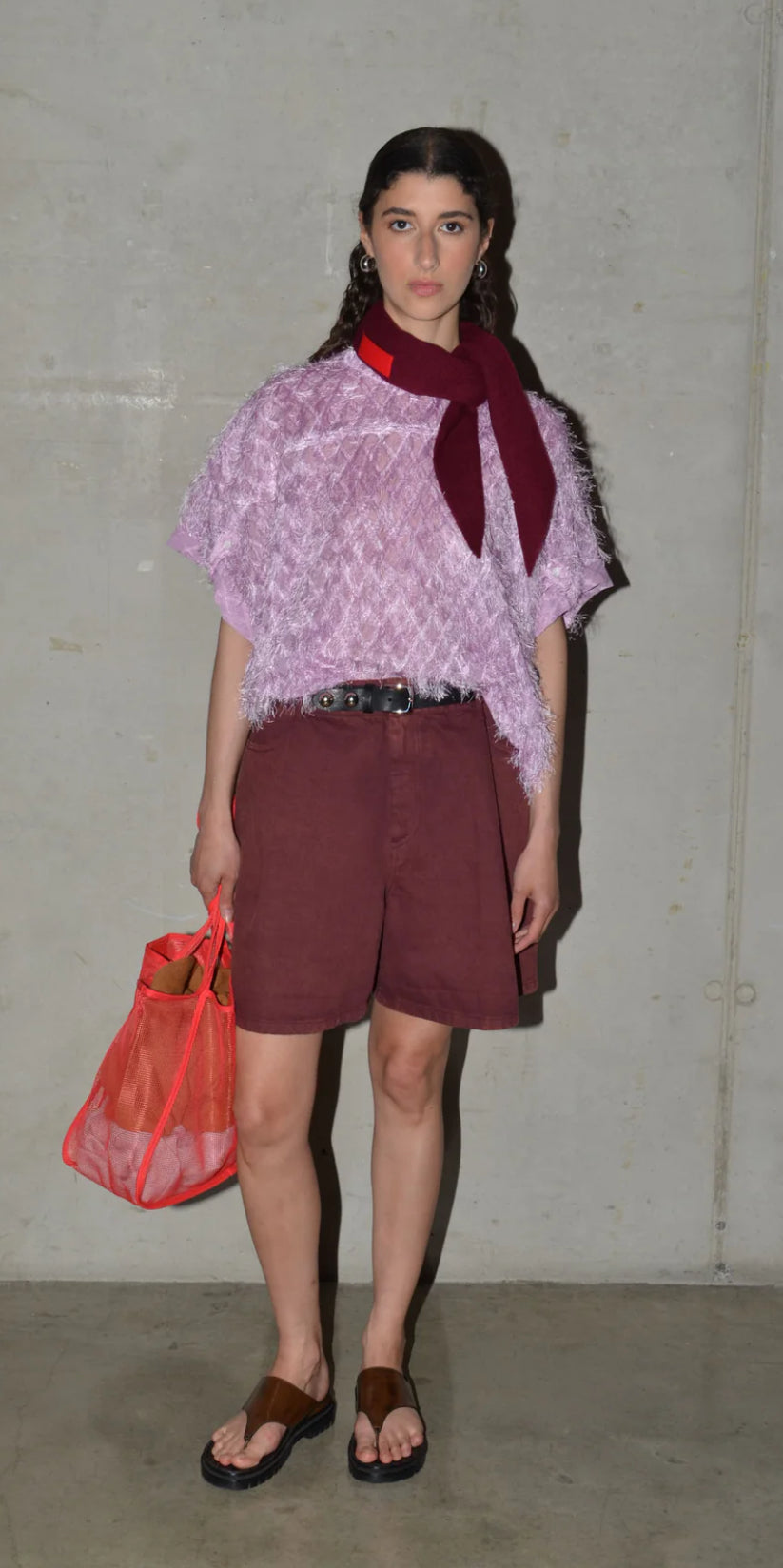 These Bermuda shorts are made from 100% cotton denim and come in 4 colours. Designed with a big front pleat, five pockets and a belt detail. Wear them mid or low waist for a relaxed silhouette with structured volume.