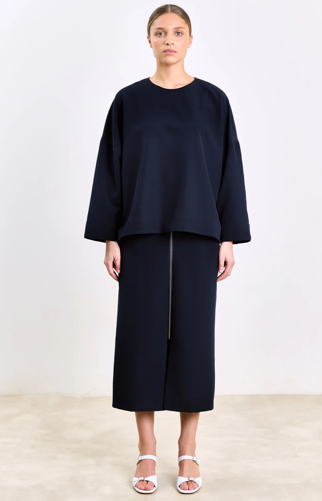 Clean, architectural lines meet effortless wearability in our Rapha top. Easy to pair with the Andre skirt for a matching set, but you can just as easily style it with tailored pants or jeans. This is a top you’ll reach for on repeat: whether you’re dressing for work, weekends, or somewhere in between
