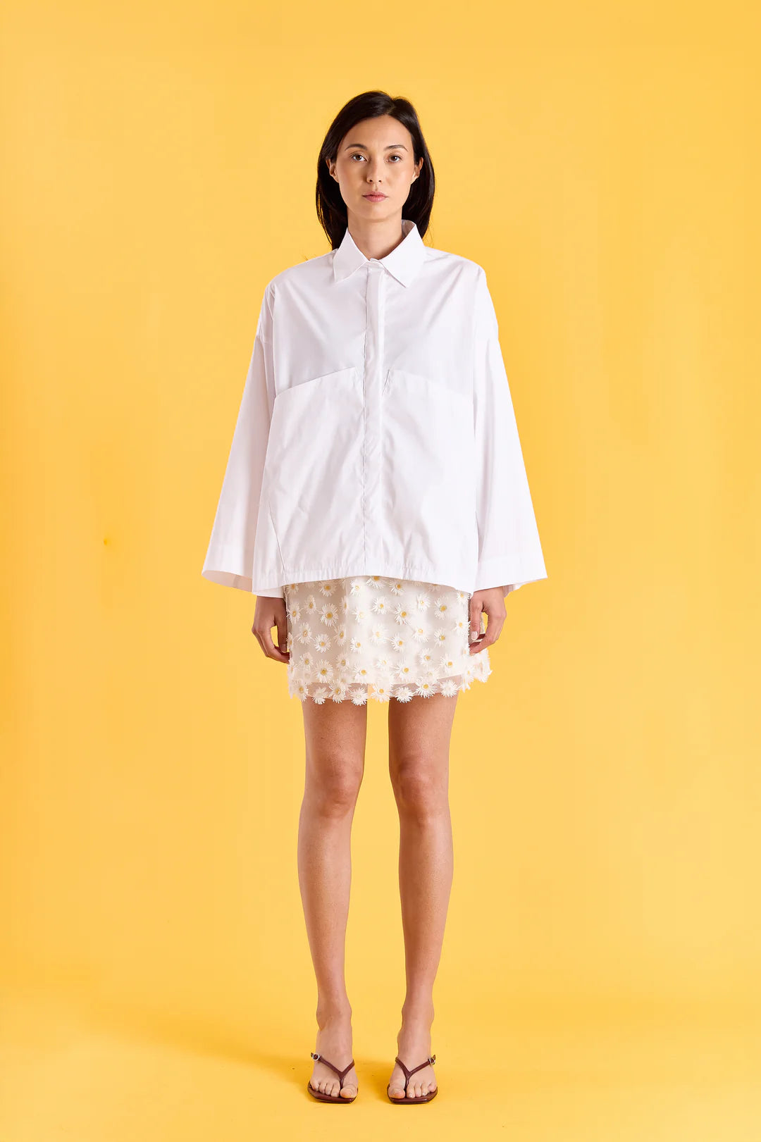 Clean and understated, the Rosa shirt redefines a classic silhouette with a modern attitude. The slightly oversized cut creates an effortless drape, while the crisp collar and concealed button placket keep the look sharp. Rosa is a shirt that feels easy yet intentional, designed to bring structure without stiffness.