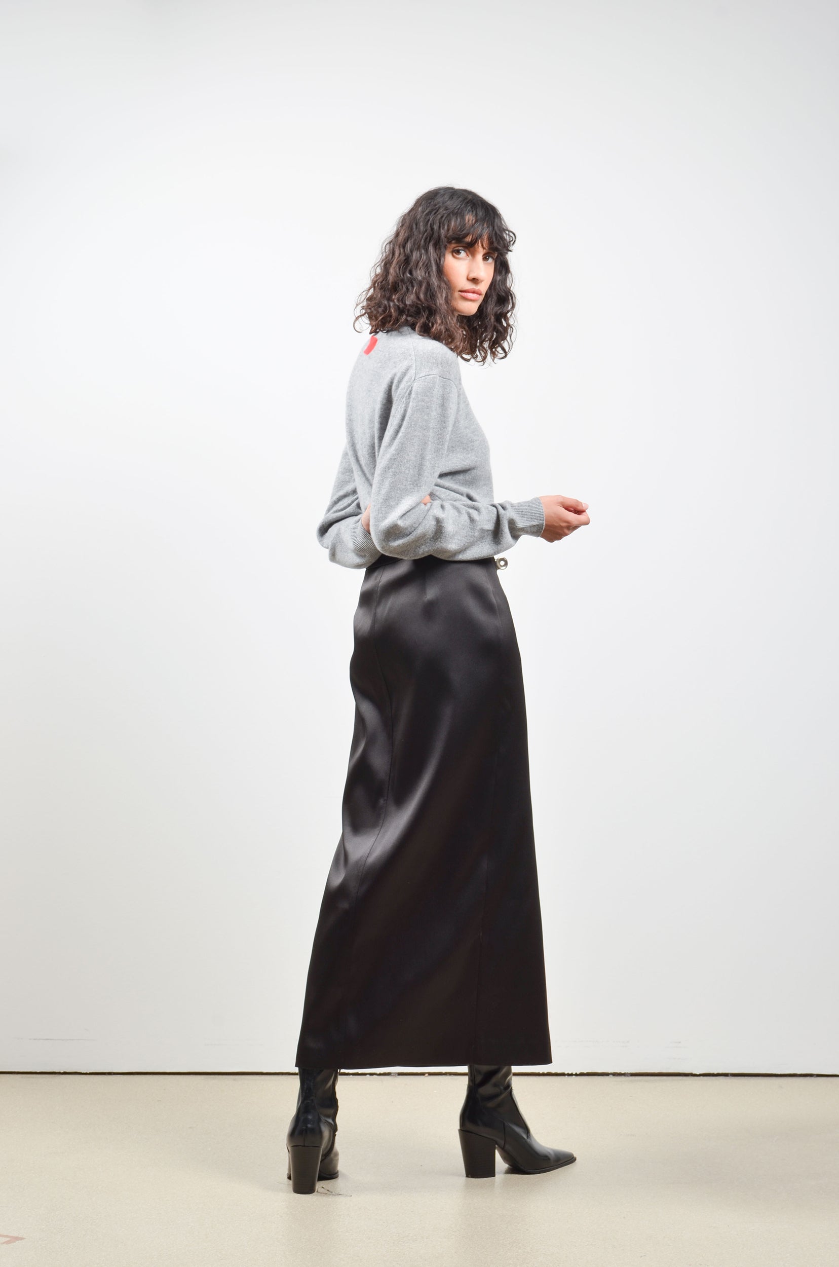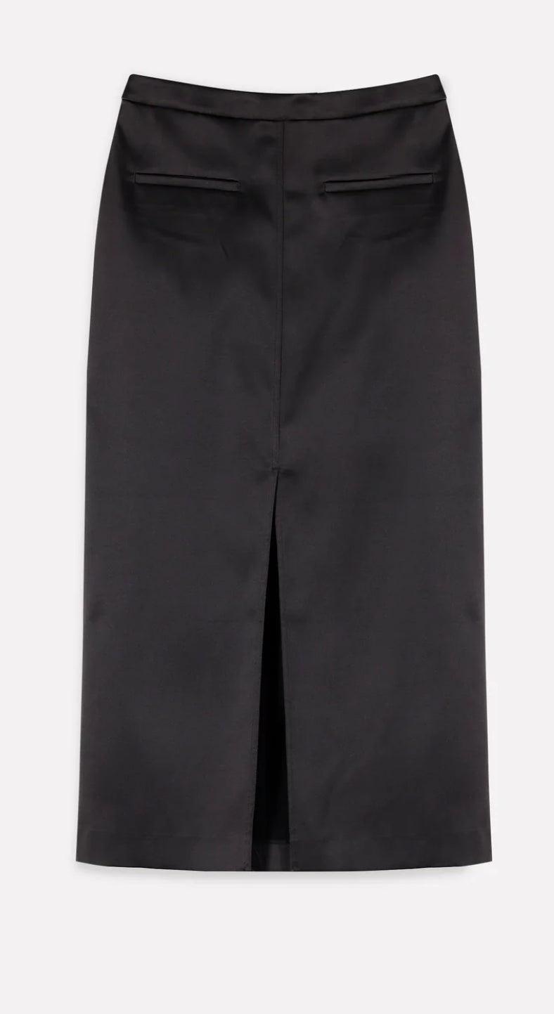 Made in Europe with a Japanes fabric By Belgian brand Collectors Club. This new model features a midi length, pocket details and front seam & split. The gorgeous fabric has a subtle shine, making it chic while staying comfortable due to the elasticity. Pair it with the matching JAYDEN blazer.