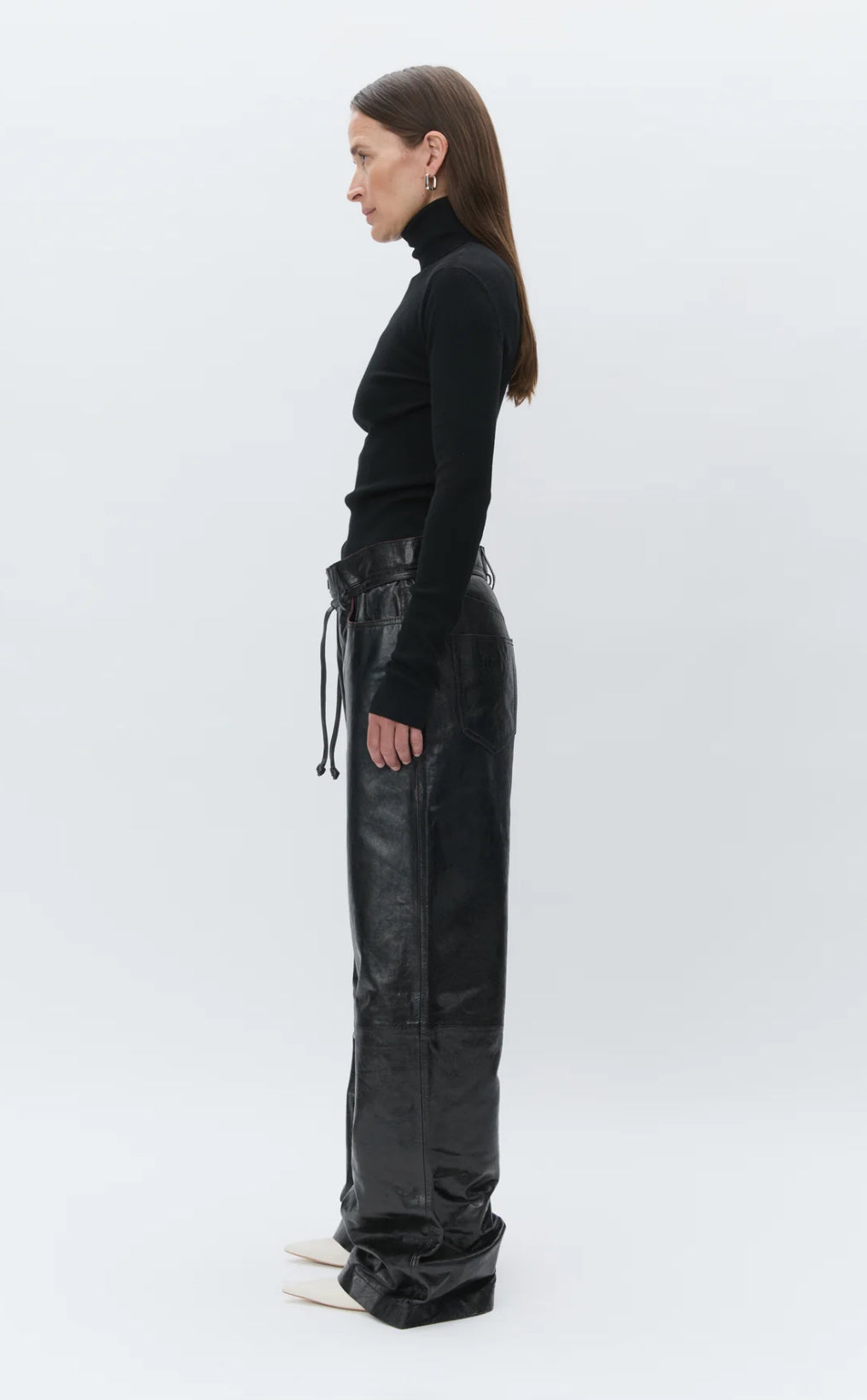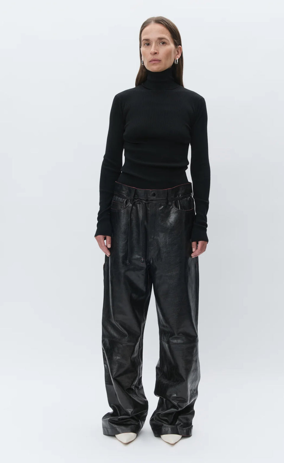 A roll neck, thin knit with a ribbed texture and stretchy feel. Wear under a V-neck dress for a modern layered look.