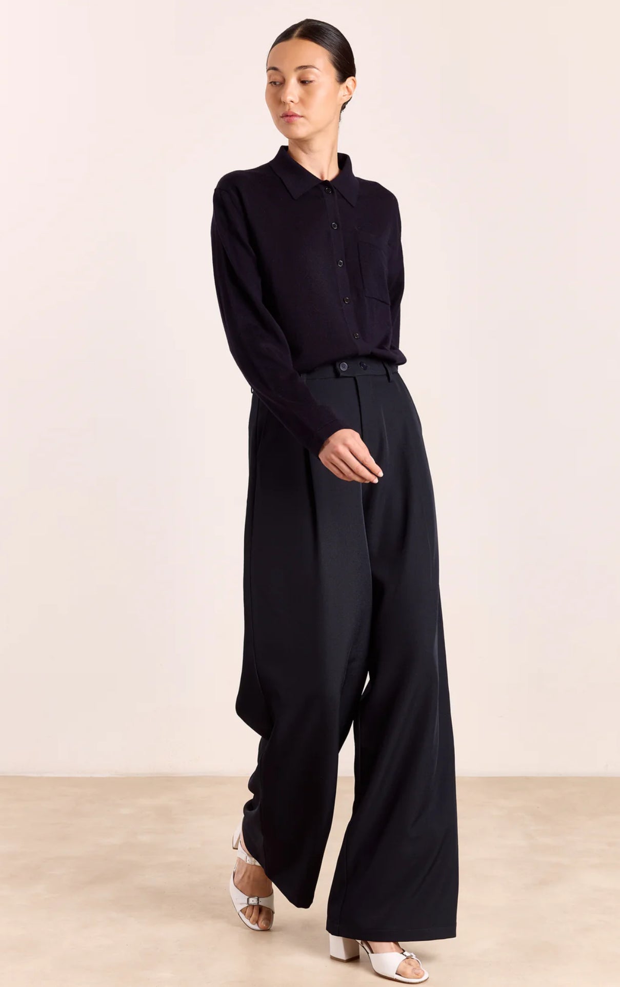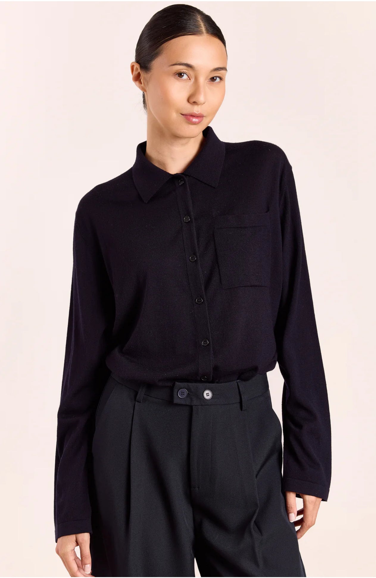 A true cornerstone for your fall–winter wardrobe, this polo cardigan combines the elegance of a classic button-up with the comfort of soft knit. Think of it as the perfect starting point for layered cold-weather looks: worn under a tailored wool coat with pleated trousers for the office, or paired with jeans for casual weekends. This is not just a cardigan, but a go-to knit that bridges smart and casual dressing, ensuring you always look put together no matter the occasion.
