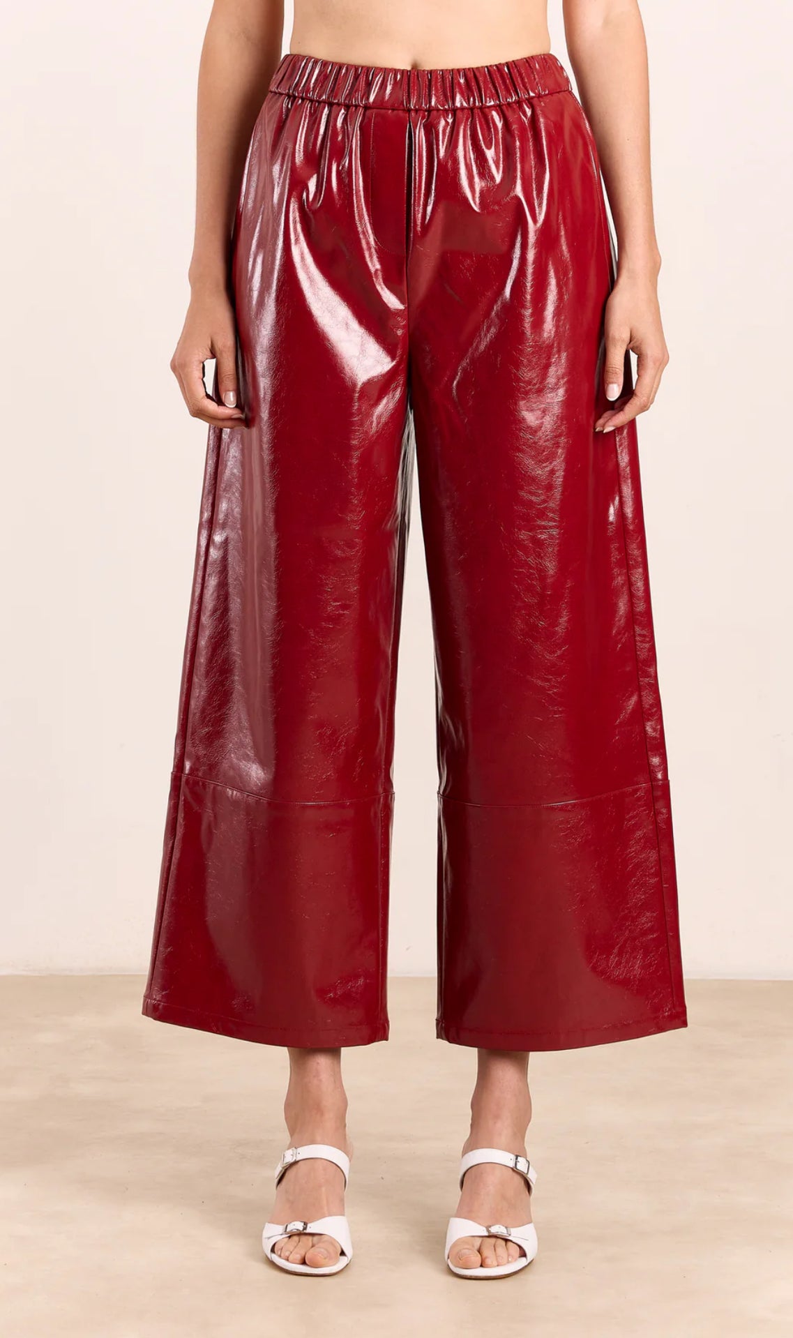 Introducing Tessa: sleek, sculptural, and unapologetically modern,rendered in a rich caramel or burgundy hue with a high-shine finish. Whether worn low-slung or high on the waist, they instantly elevate any ensemble with a glossy punch of polish.Designed to elongate the silhouette and move with ease, they’re your go-to for both boardroom confidence and weekend cool.