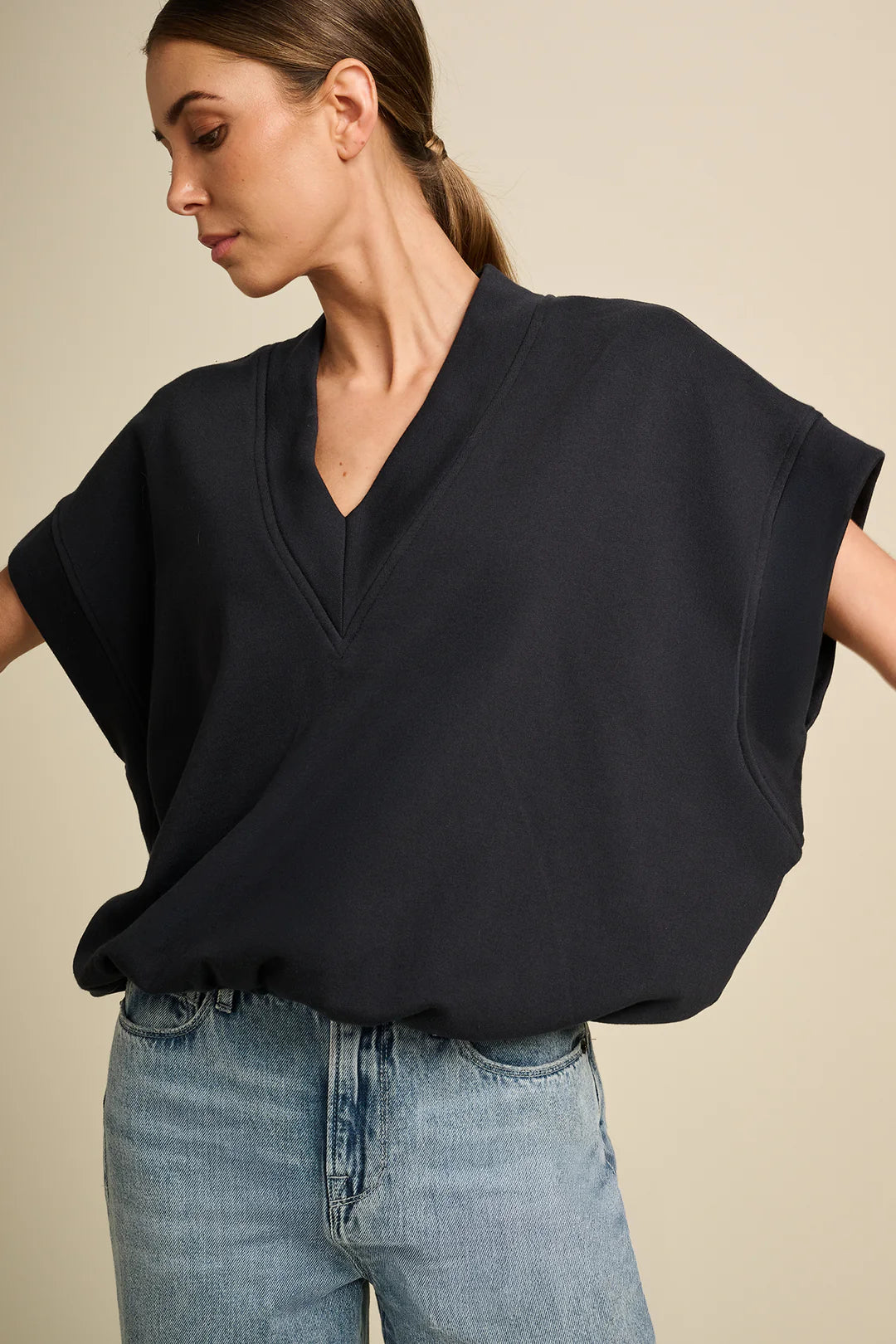 Our sleeveless Whisper sweater is designed for effortless summer comfort. Made from a soft, breathable fabric, it offers a clean and refined look while remaining light and easy to wear.