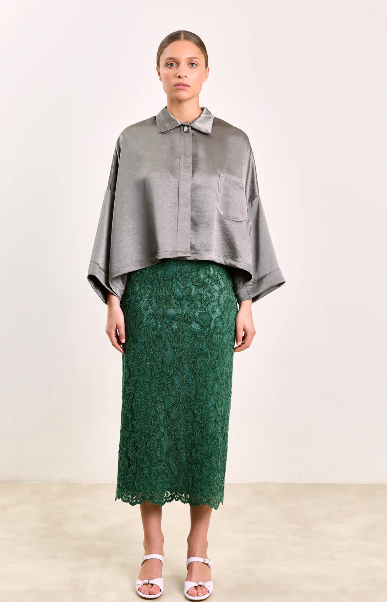 Wear Yannick tucked into tailored trousers for a polished look, or loose over wide-leg jeans for relaxed ease. Match it with our Sam satin skirt for a tonal set, or with a lace skirt for contrast.